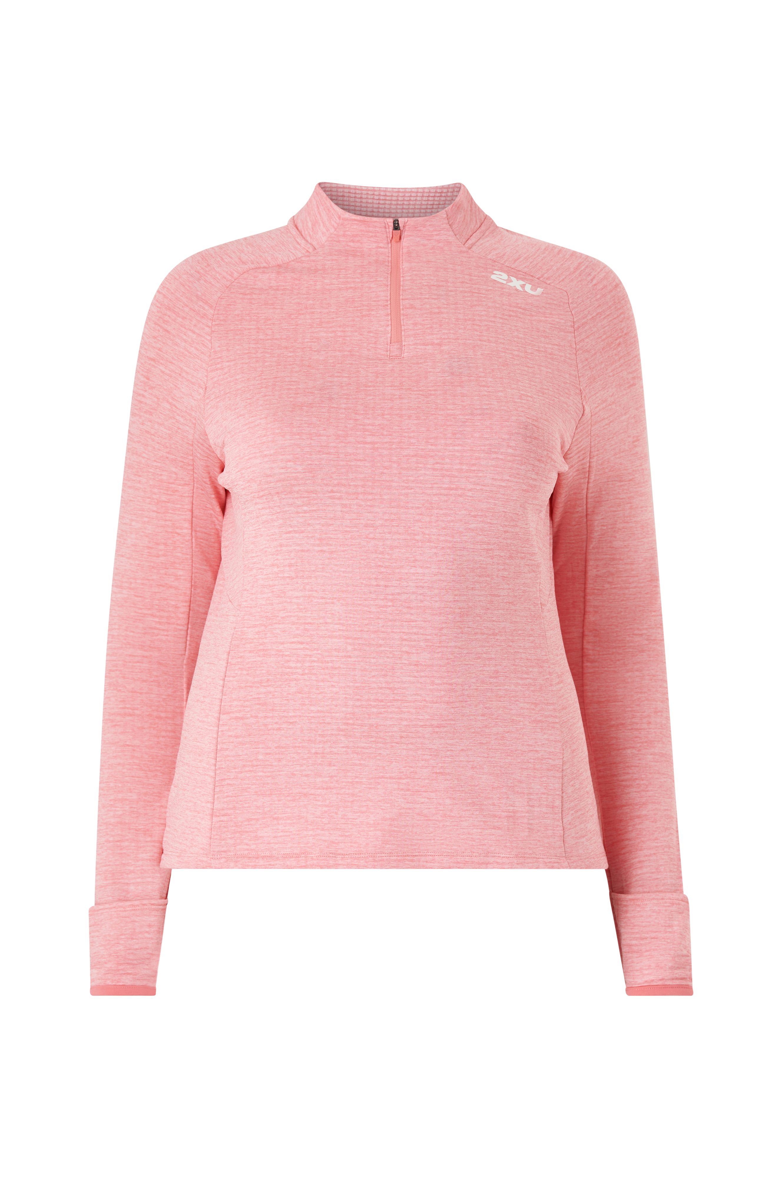 Funktionstrøje med en genindvundet dobbeltstrikket vaffelstruktur som skaber små luftlommer, der fanger kropsvarmen, øger åndbarheden og gør tøjet mere hurtigtørrende. Standkrave og 1/4-lang lynlås. Ribkanter med hul til tommelfingeren som kan vendes til vanter for at holde hænderne varme. En lomme med lynlås foroven foran. Reflekterende logo.