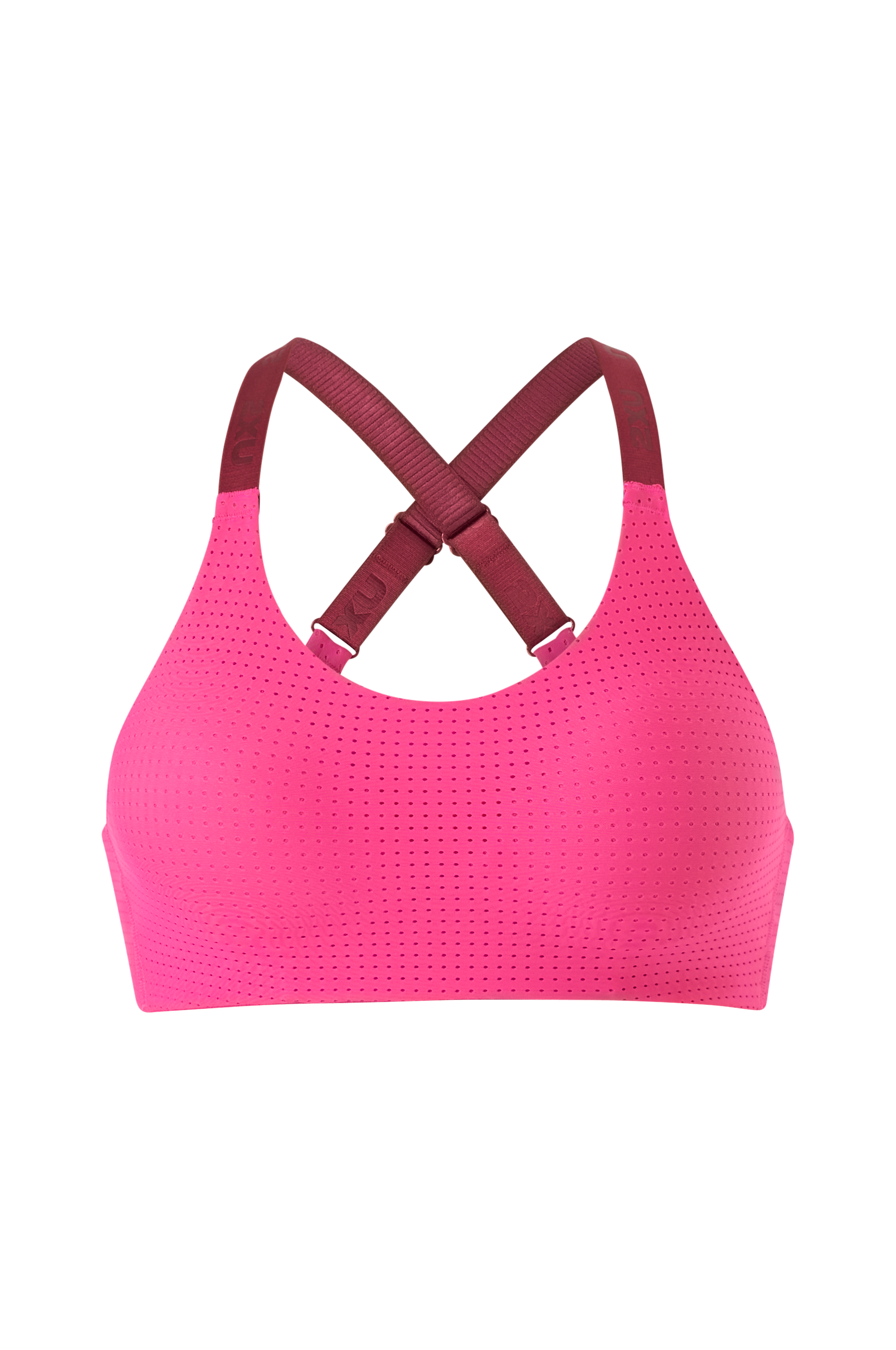 Sports-bh i ventilerende stof med stretch. Støtte ved medium intensitet. Det perforerede, fugttransporterende stof øger åndbarheden og holder dig tør under din træning. Støttende, formstøbte skåle og justerbare elastiske skulderstropper, som er krydsede bagpå. Lukning med hægte/malle bagpå.
