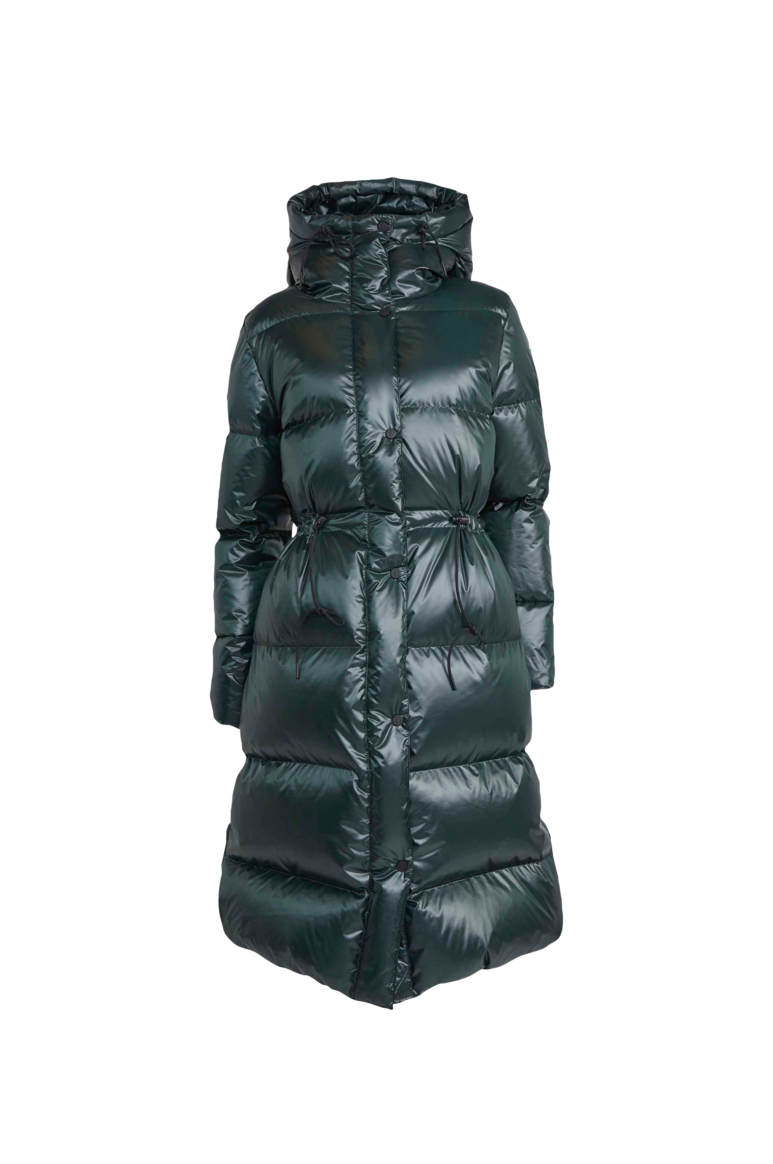 • Eksklusiv, varm dunfrakke med skinnende ydermateriale • Vindafvisende • Vandafvisende • Fast hætte med træksnørre • To-vejs lynlås • Vindflap over lynlåsen med trykknapper • Træksnørre ved taljen • Sidelommer med lynlåse og børstet trikotfor • Slidser nede i siderne • Inderlomme med lynlås • YKK lynlåse • Vandsøjle: 10 000 mm • Åndbarhed: 7000 g/m2/24h • Længde: 116 cm i størrelse 36