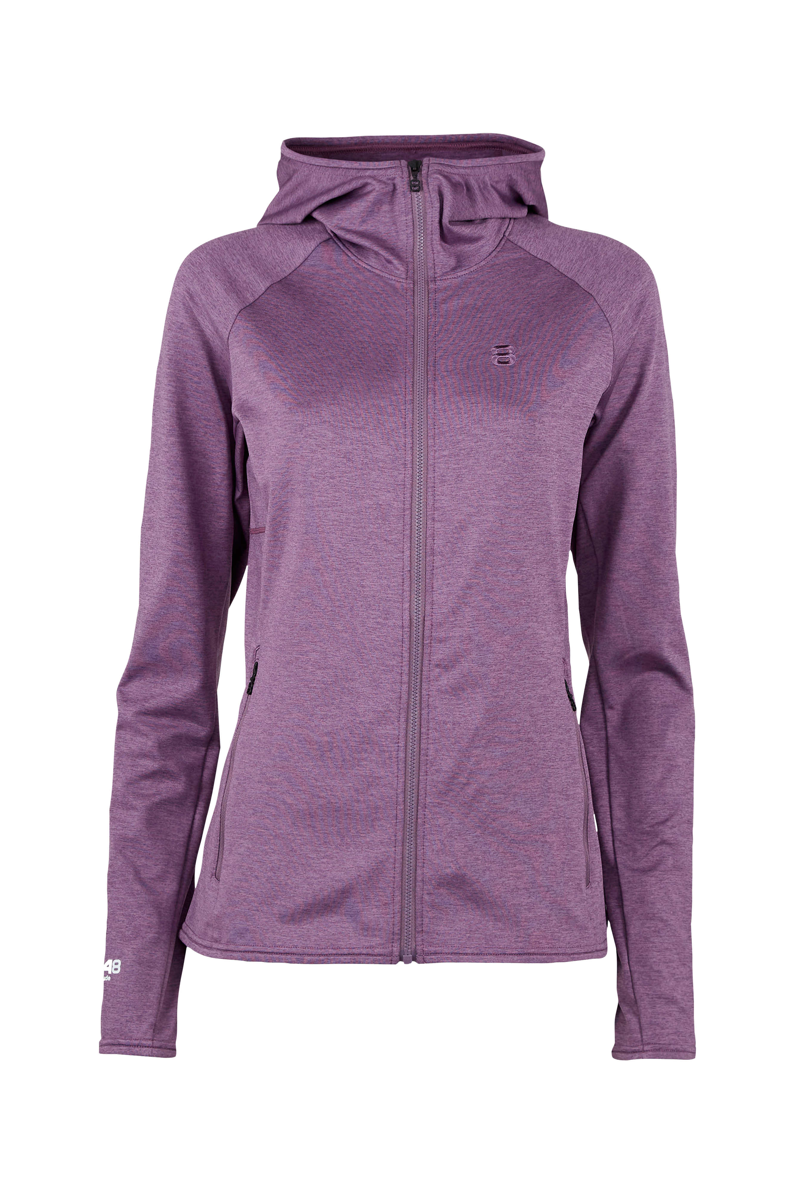 Teknisk hoodie i et let og meget smidigt materiale med 4-vejsstretch og fugttransporterende egenskaber. Perfekt tilvandreture og aktive gåture eller som en varmende trøje under jakken. Melange-effekt i materialet giver et eksklusivt look. Blødt børstet bagside. To taljelommer med lynlås. Fast hætte. Lille 8-tal på brystet i 3D-print.