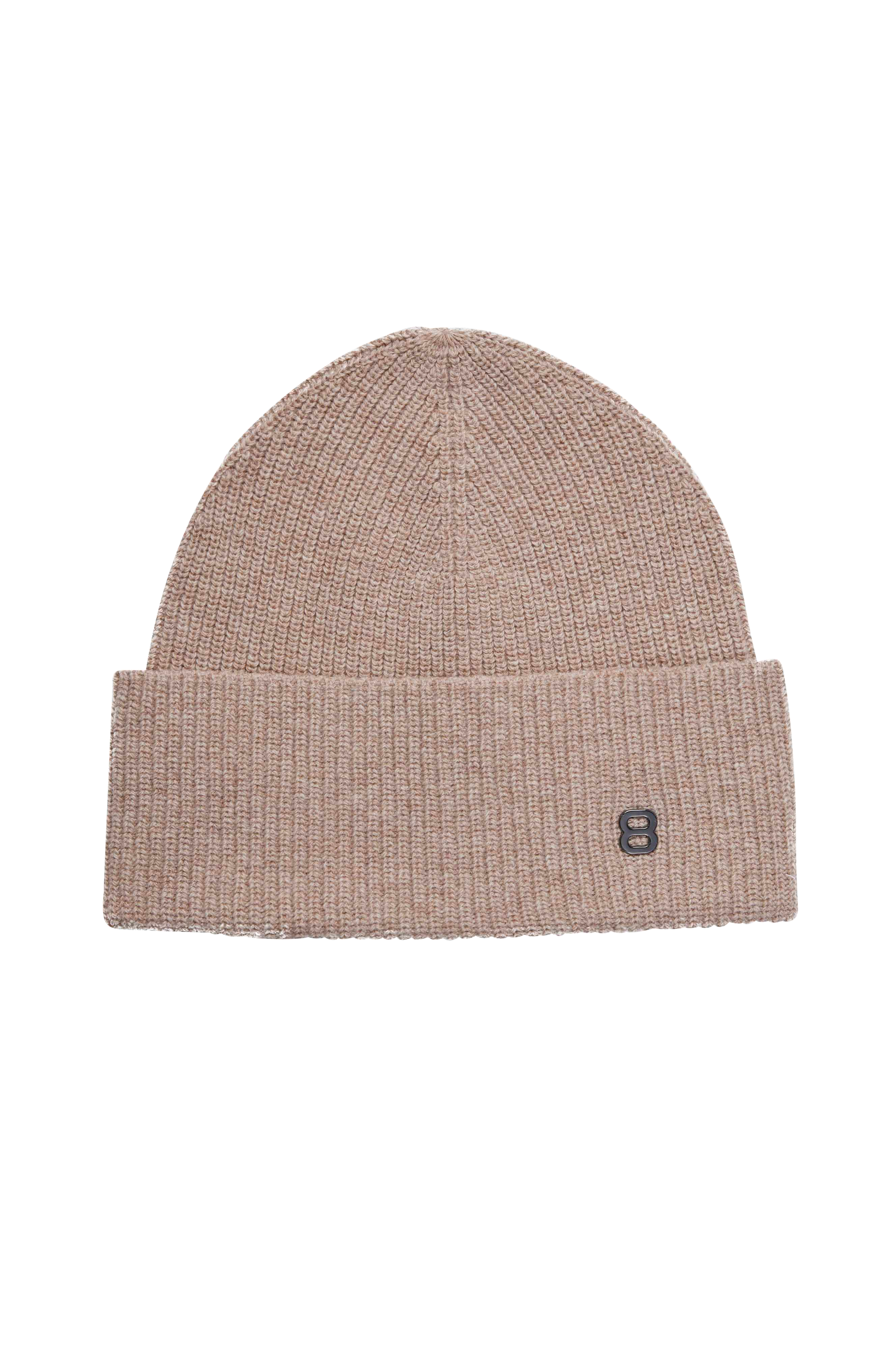 • Ribstrikket hue i merinouldblanding• Foldet søm med logo i metal