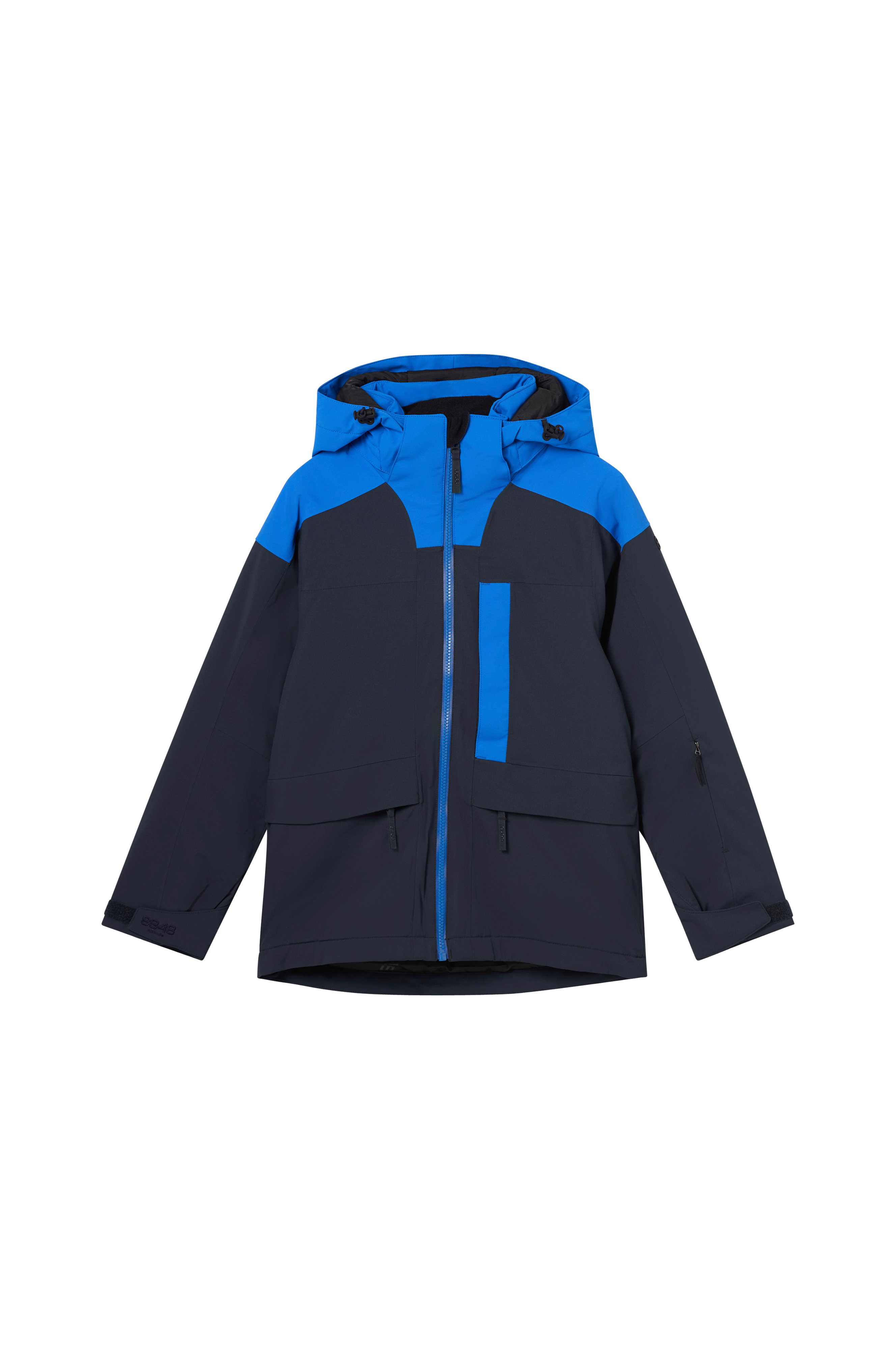 For at holde sne og kold vind ude er jakken udstyret med en kraftig snefang i taljen og justerbare ærmeafslutninger med velcrobånd. Den robuste og forede stormhætte kan nemt tages af, og størrelser fra 140-170 cl har en justeringssnor.