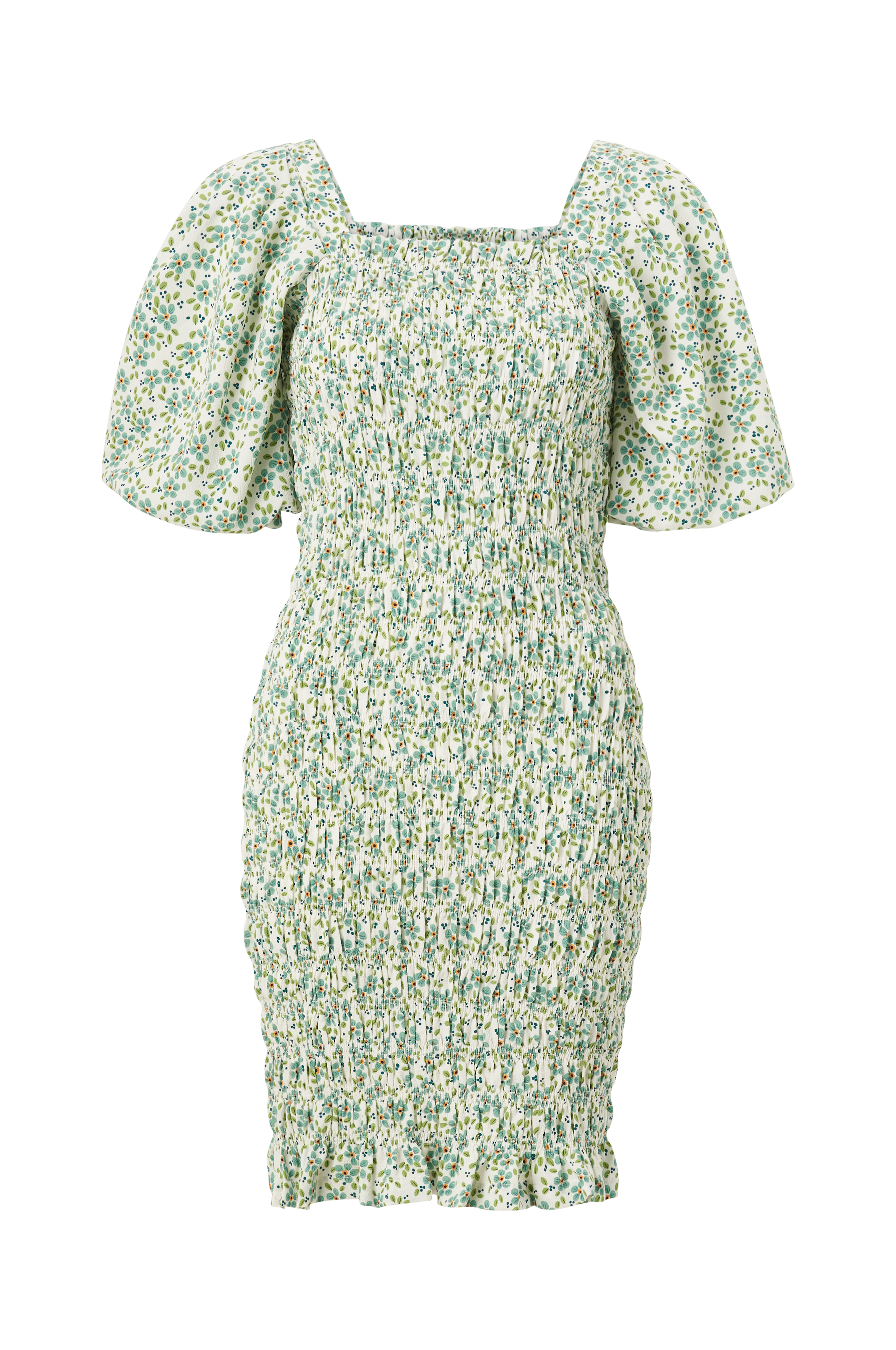 • Smocket, figursyet kjole• Firkantet halsudskæring• Halvlange ballonærmer• Længde: 93 cm i størrelse 36