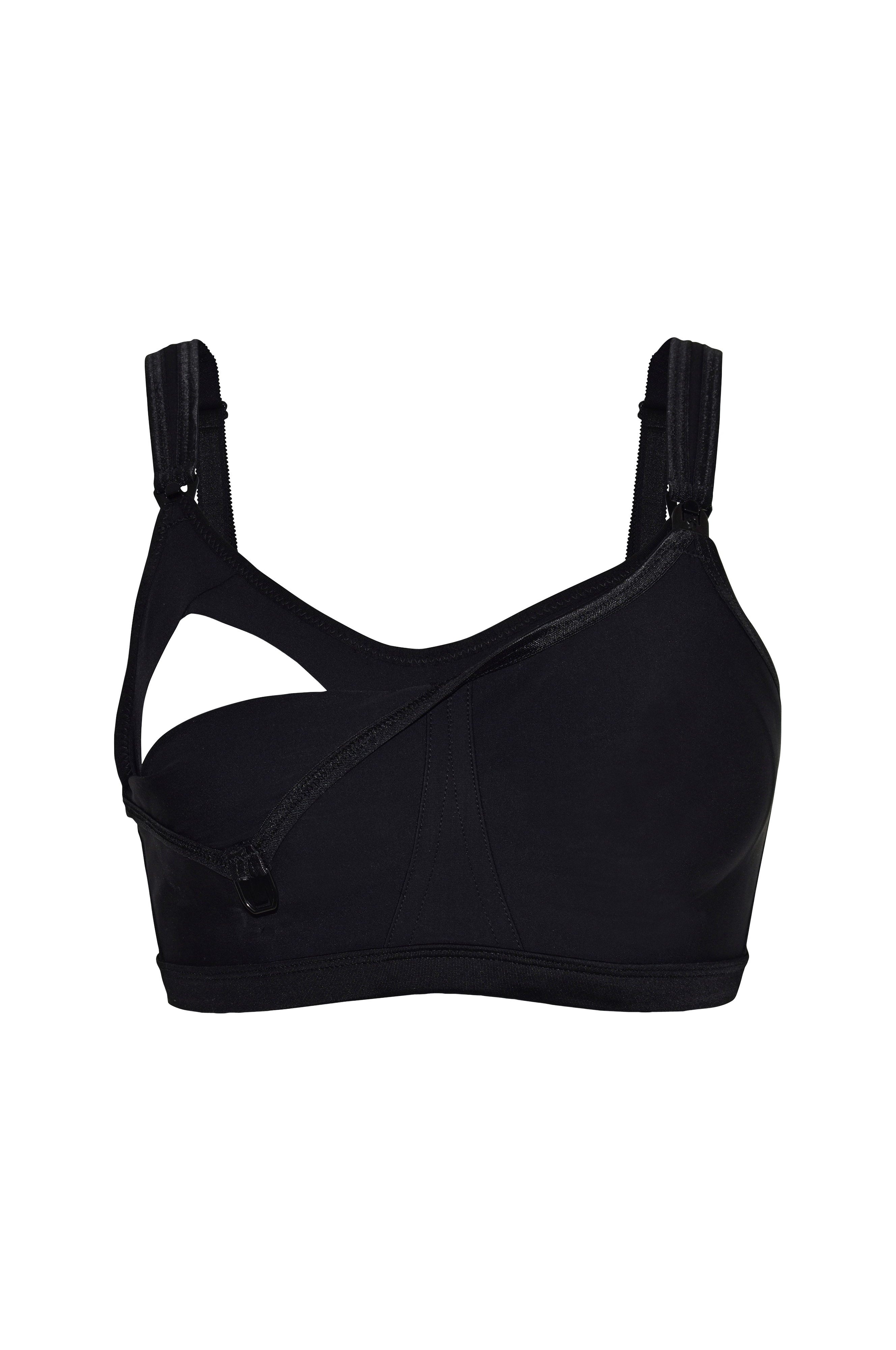 Sporty amme-bh uden bøjle i åndbart coolshape-materiale som transporterer fugten væk fra kroppen. Stabil og behagelig bh som giver god støtte og holder barmen på plads. Formpressede, tynde skåle i stretchkvalitet. Ammekonstruktion med spænder, som er lette åbne. Vatterede, justerbare skulderstropper og bred hægte- og mallelukning bagpå.