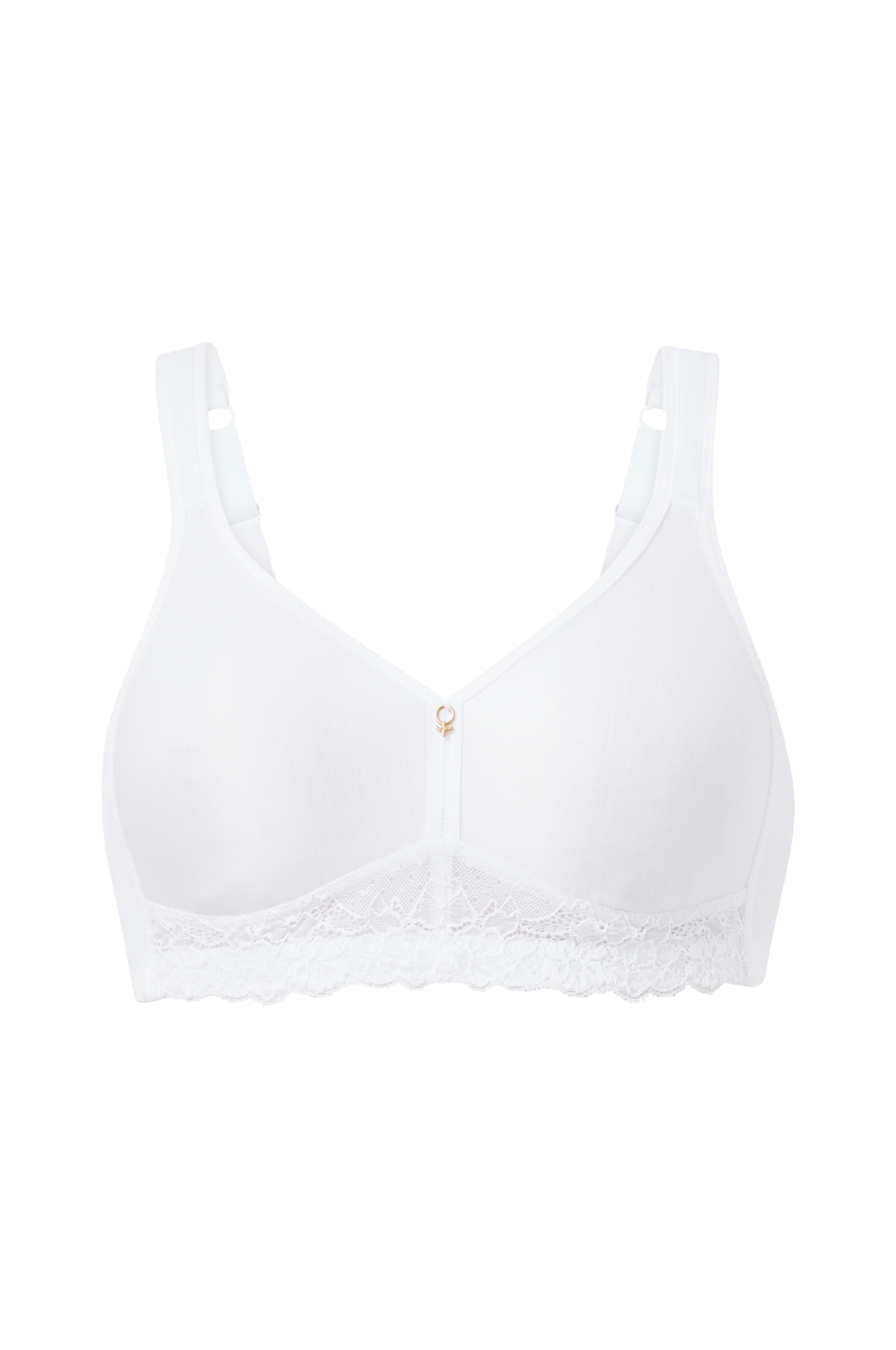Bh med formpressede, tynde skåle i jersey med blød inderside og blonde forneden. Model uden bøjler med elastik forneden for ekstra komfort god støtte. Justerbare skulderstropper og bred hægte- og mallelukning i ryggen.