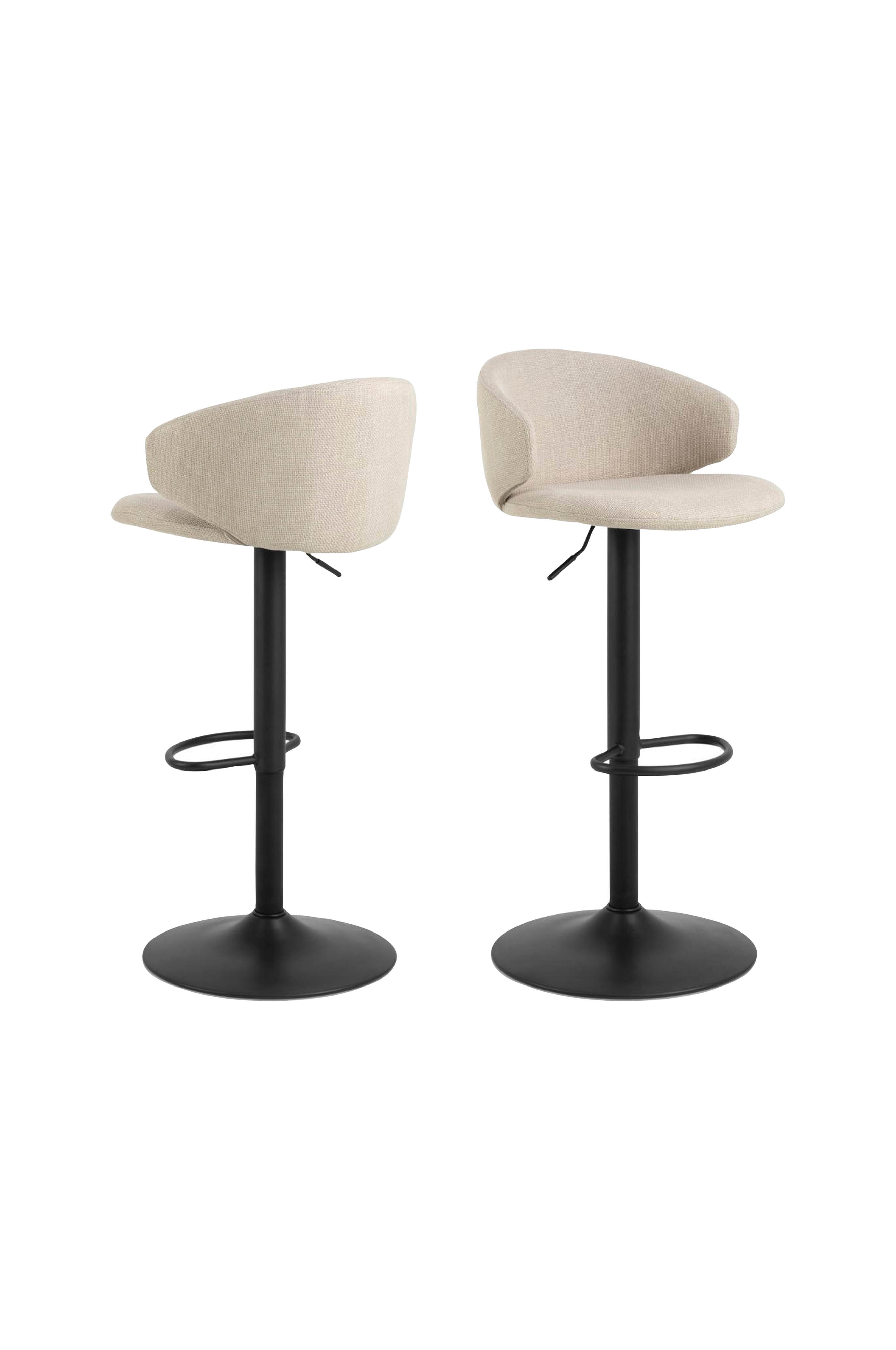 Det, der skiller sig ud ved denne barstol, er dens ophøjede raffinement. Med en kort, buet ryg og et indbydende sæde er denne højdejusterbare barstol behagelig at sidde i og at se på. Kombinationen af struktureret stof og trompetfod, forstærket af drejefunktion og fodstøtte, gør den til en moderne siddemulighed, der supplerer ethvert hjem.
