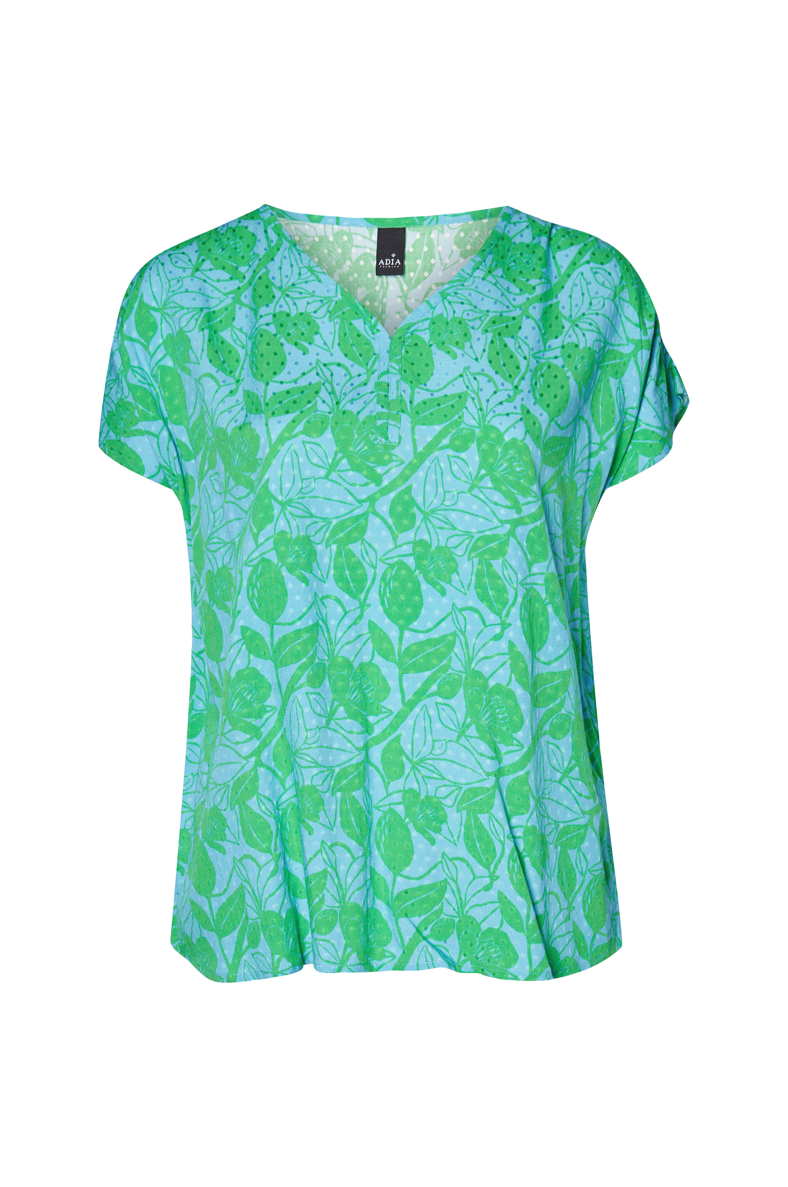 • V-udskæring• Korte ærmer• Strukturmønster• Store størrelser