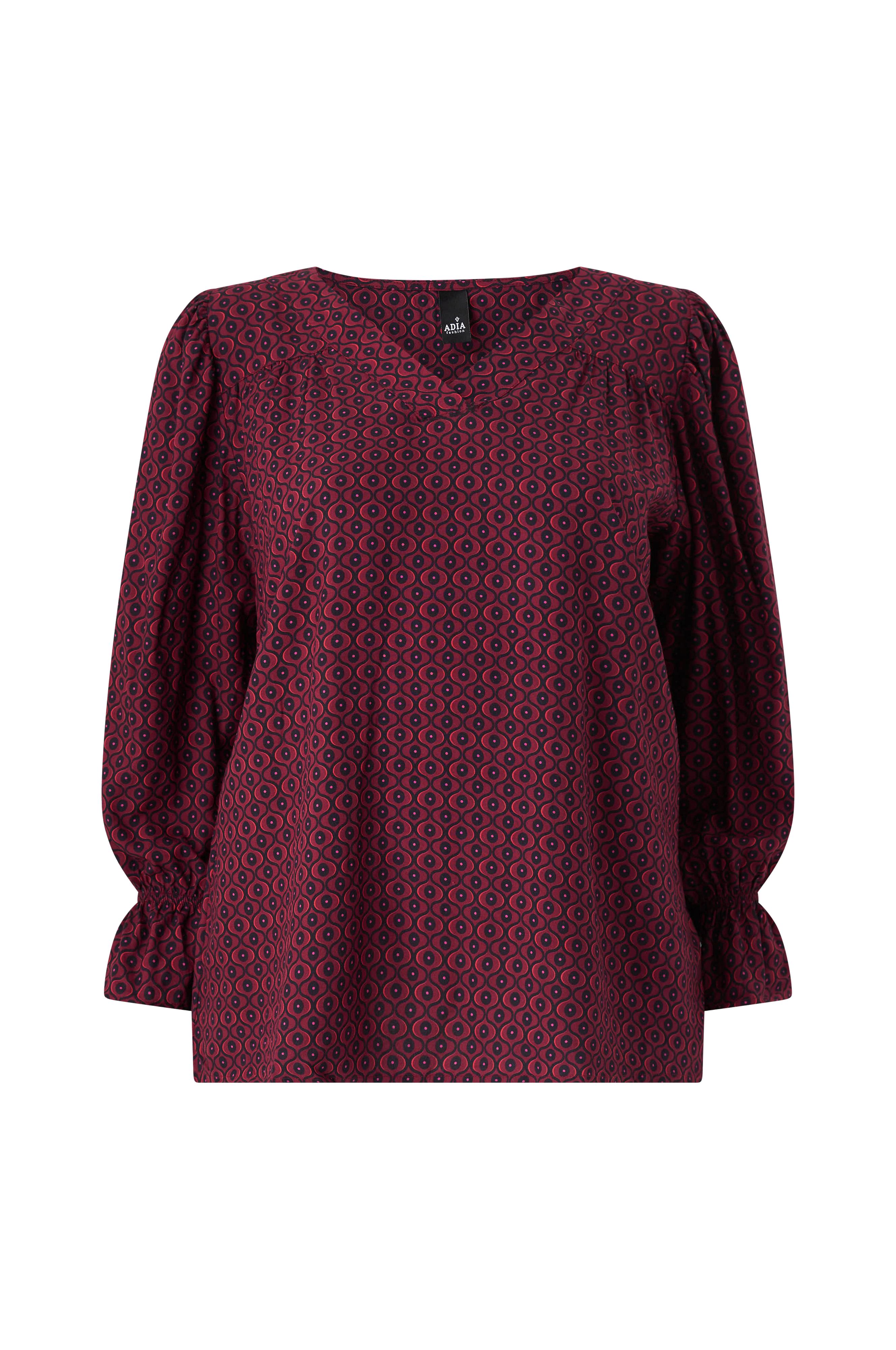 • Bluse i viskose med printet mønster• Løs pasform• V-formet halsudskæring• Langt ærme• Elastik ved manchetterne med volant• Store størrelser