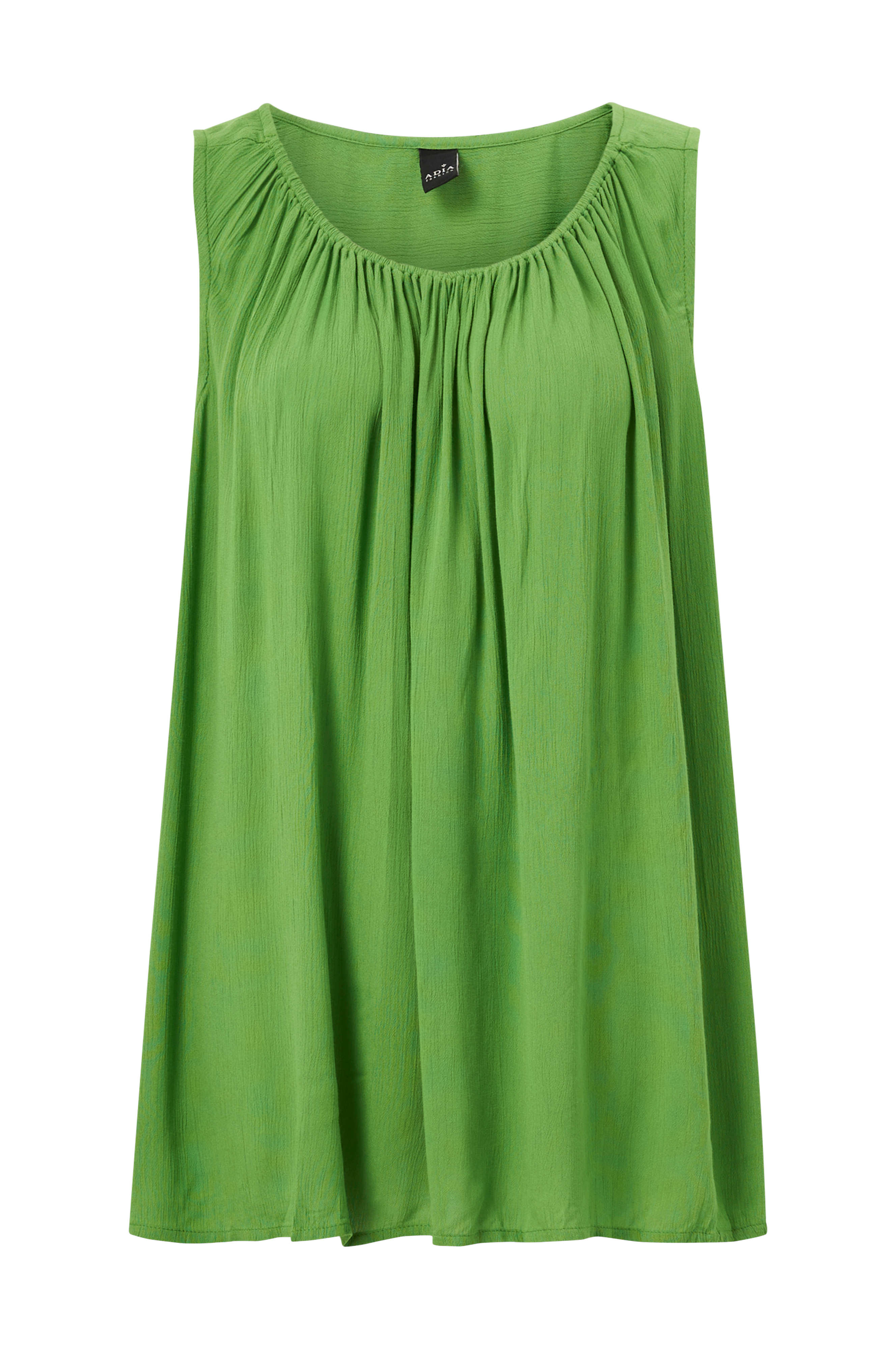 • Ærmeløs bluse• Fremstillet af viskose med crepe kvalitet• Rund halsudskæring• Elastik rundt om halsen med samling