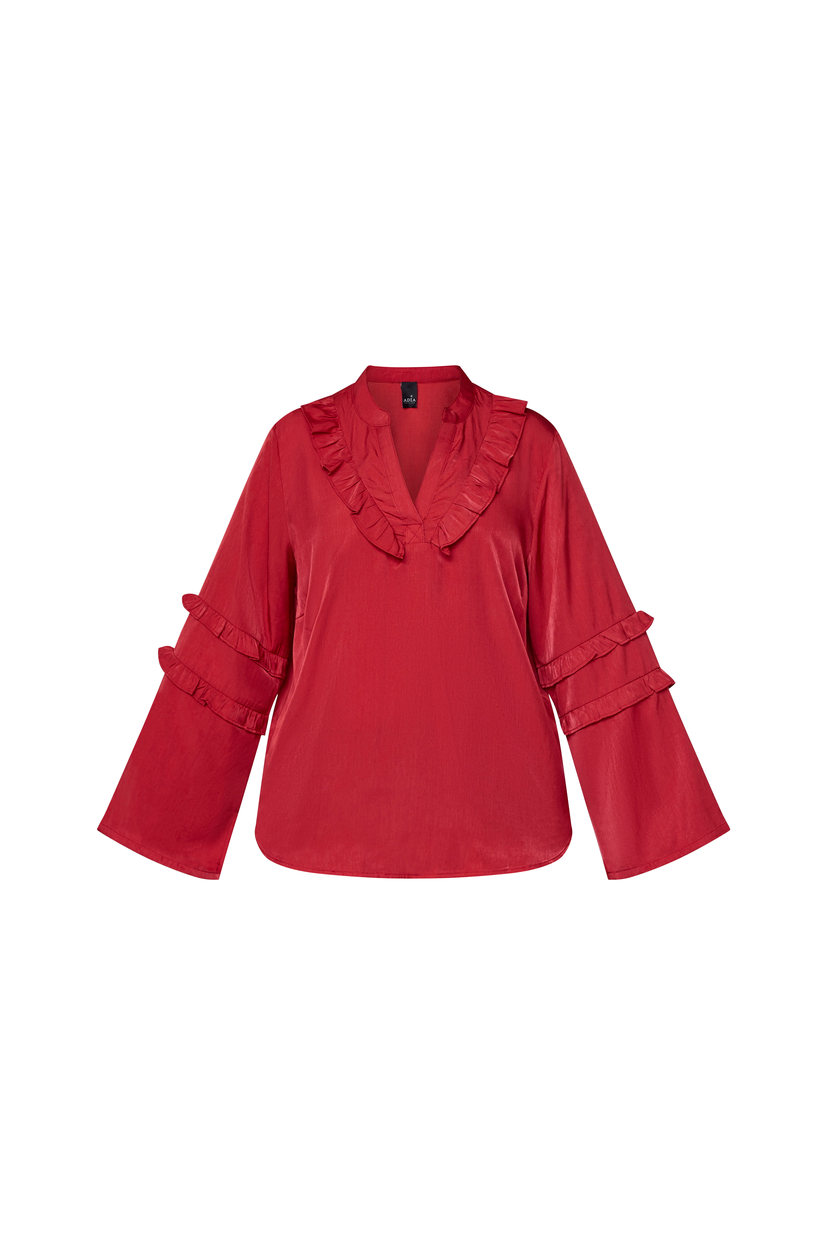 • Bluse i viskoseblanding med volantdetaljer• Rund halsudskæring med slids foran• Lange ærmer• Afrundet søm• Plusstørrelser