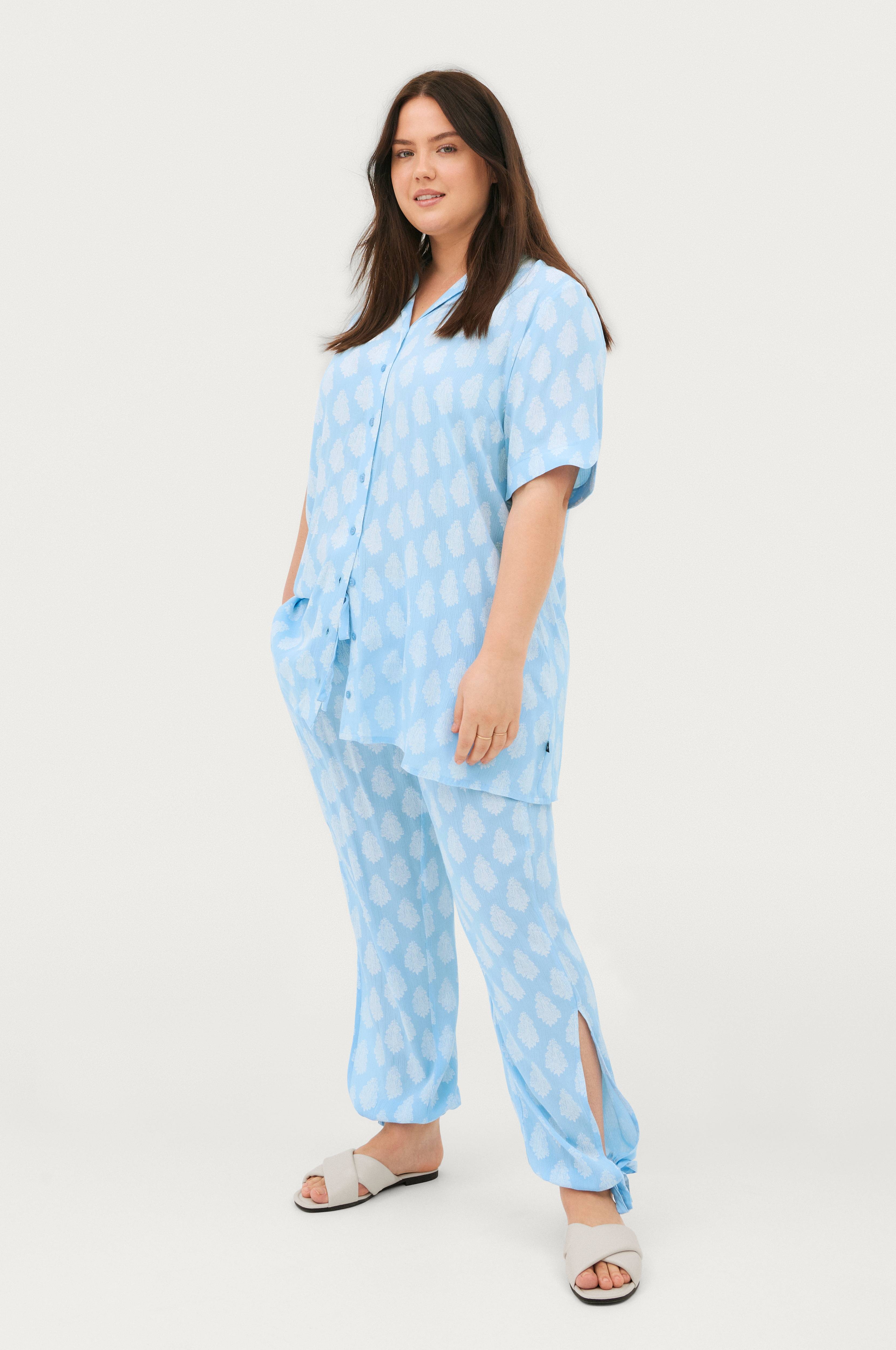 • Ankellang model med løs pasform• Elastisk talje med træksnørre• Lommer i siderne• Høje slidser ved enden af benene• Træksnørre ved enden af benene• Let krøllet kvalitet