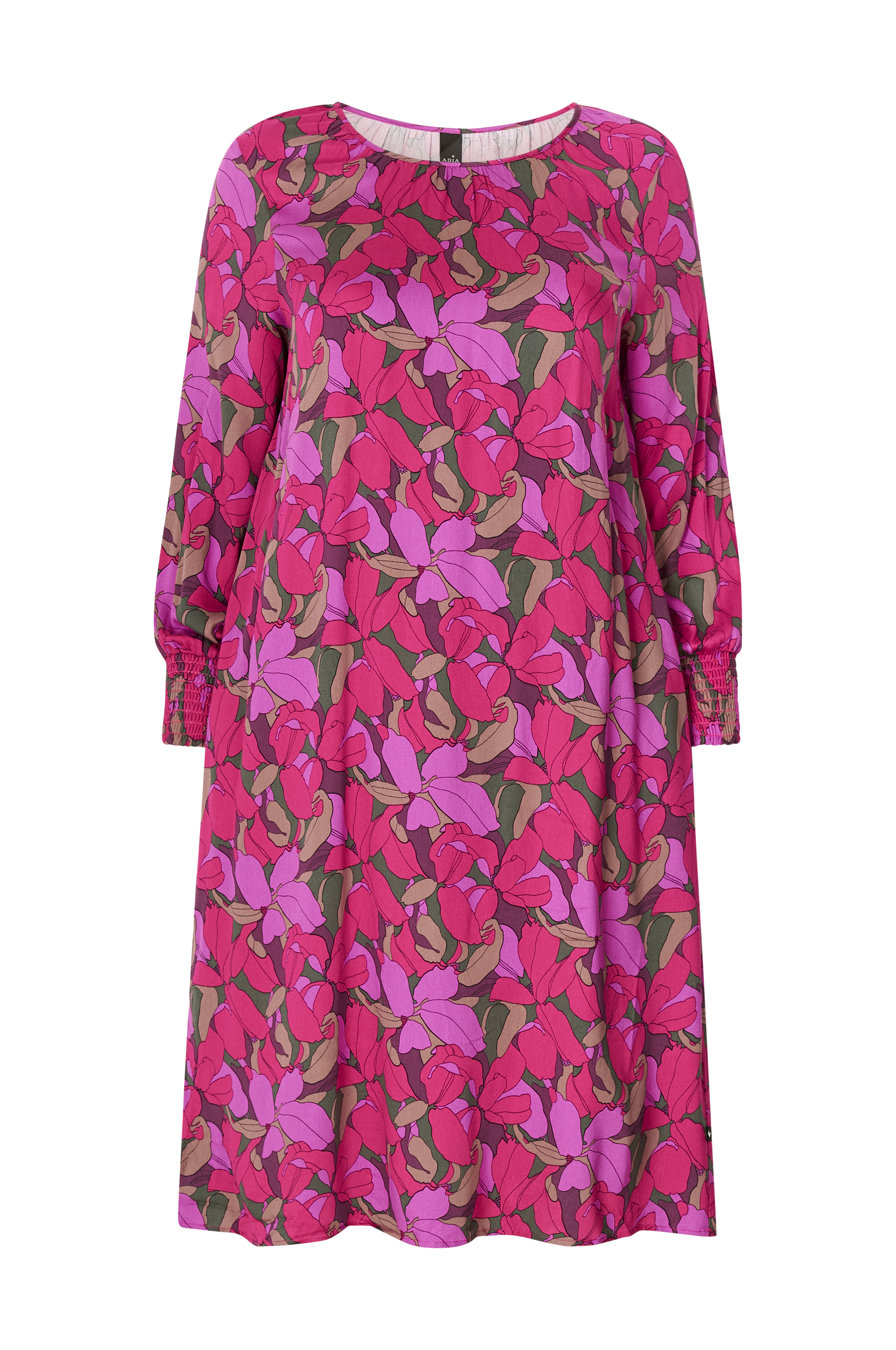 • Midikjole i viskose• Bred, rynket halsudskæring• Lange ærmer med manchet• Lommer i siderne• Store størrelser• Længde: 117 cm i størrelse S