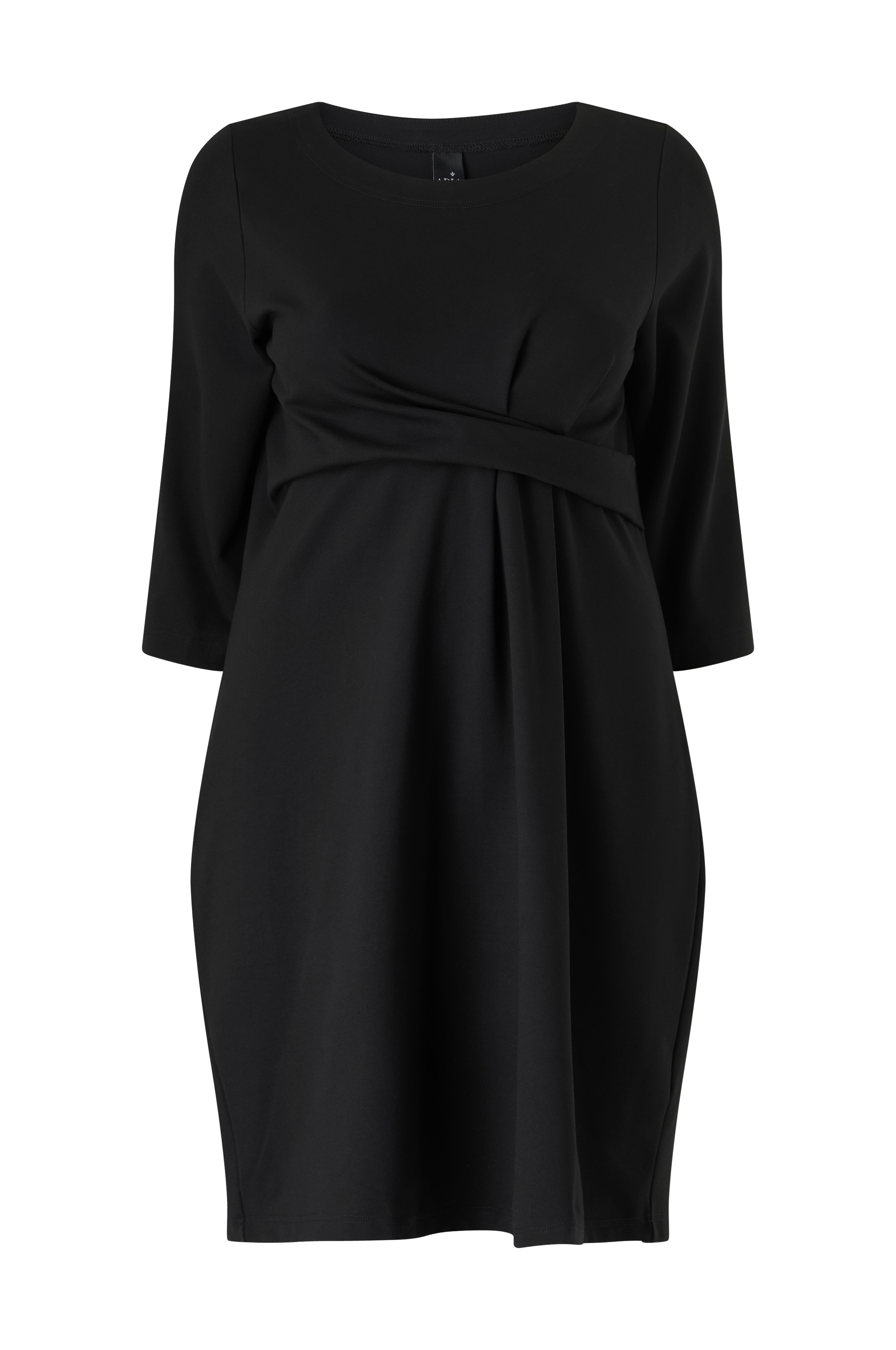 • Blød, elastisk kjole• 3/4 lange ærmer• Rund halsudskæring• Draperingsfolder ved taljen• Længde: 102 cm i størrelse S• Plusstørrelser
