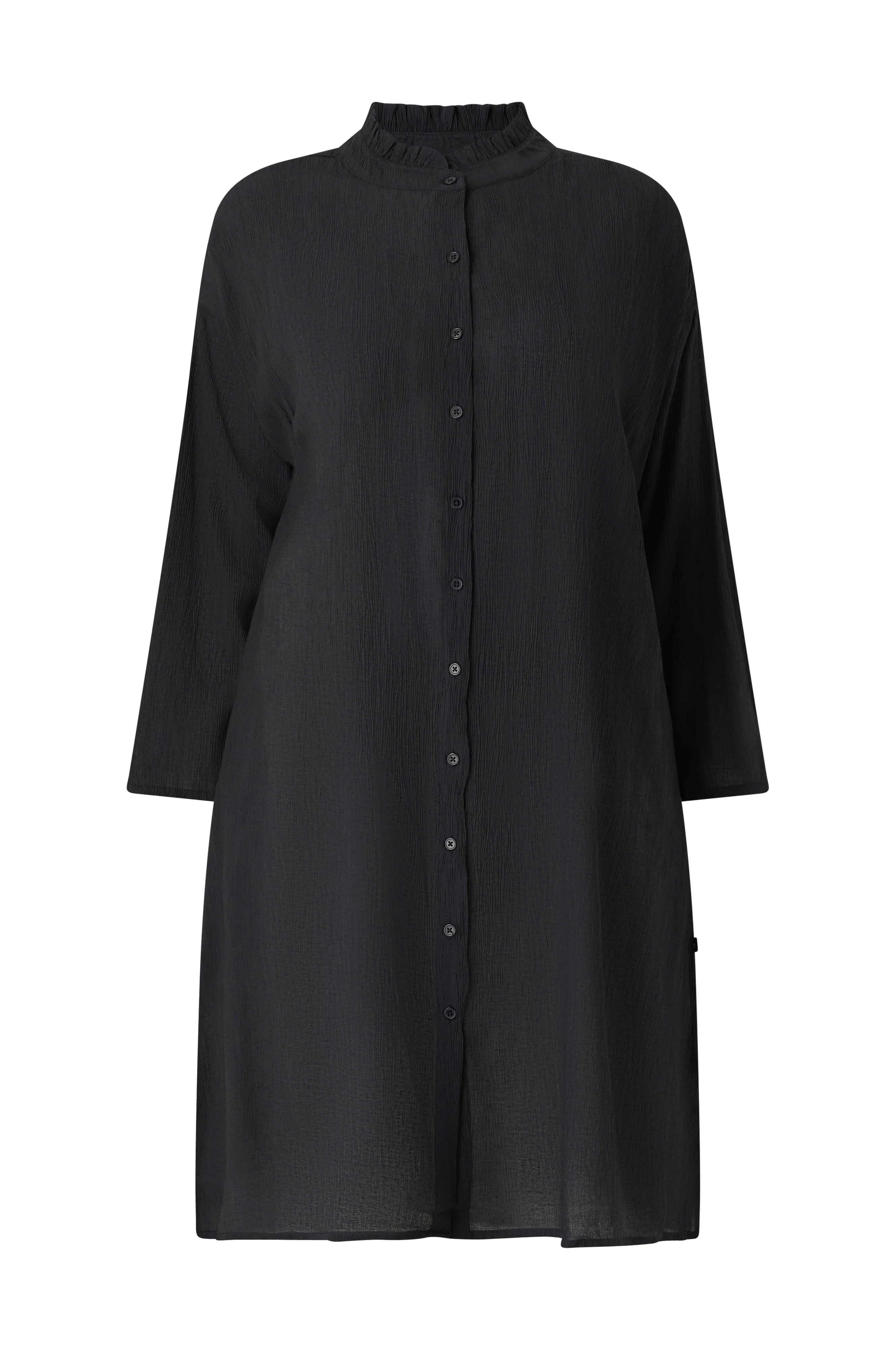 • Crepe kvalitet• Rund halsudskæring med volant hele vejen rundt• Knapper hele vejen frem• Lange ærmer• Slidser i siderne• Store størrelser• Længde: 113 cm i størrelse S