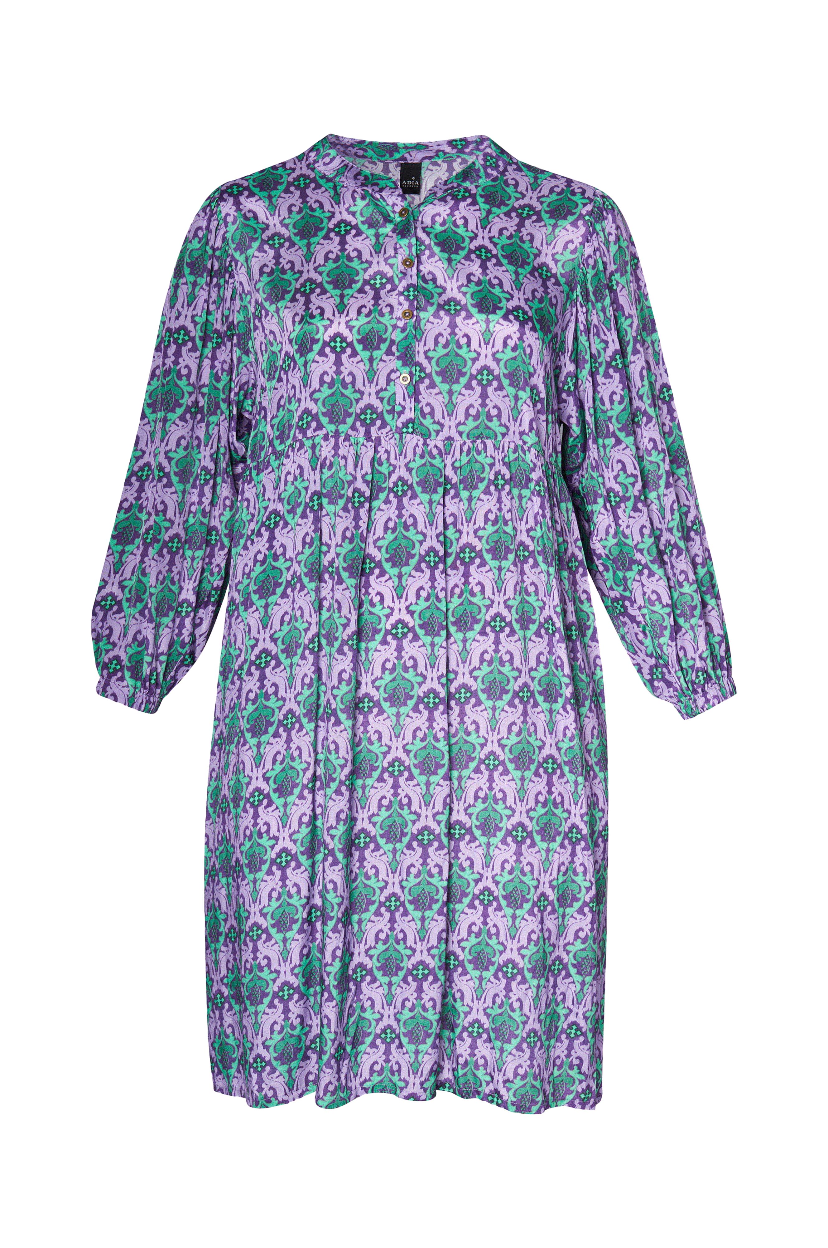 • Mønstret kjole i viskose• Knapper oppe foran• Ballonærmer med elastiske manchetter• Lommer i siderne• Store størrelser• Længde: 111 cm i størrelse S