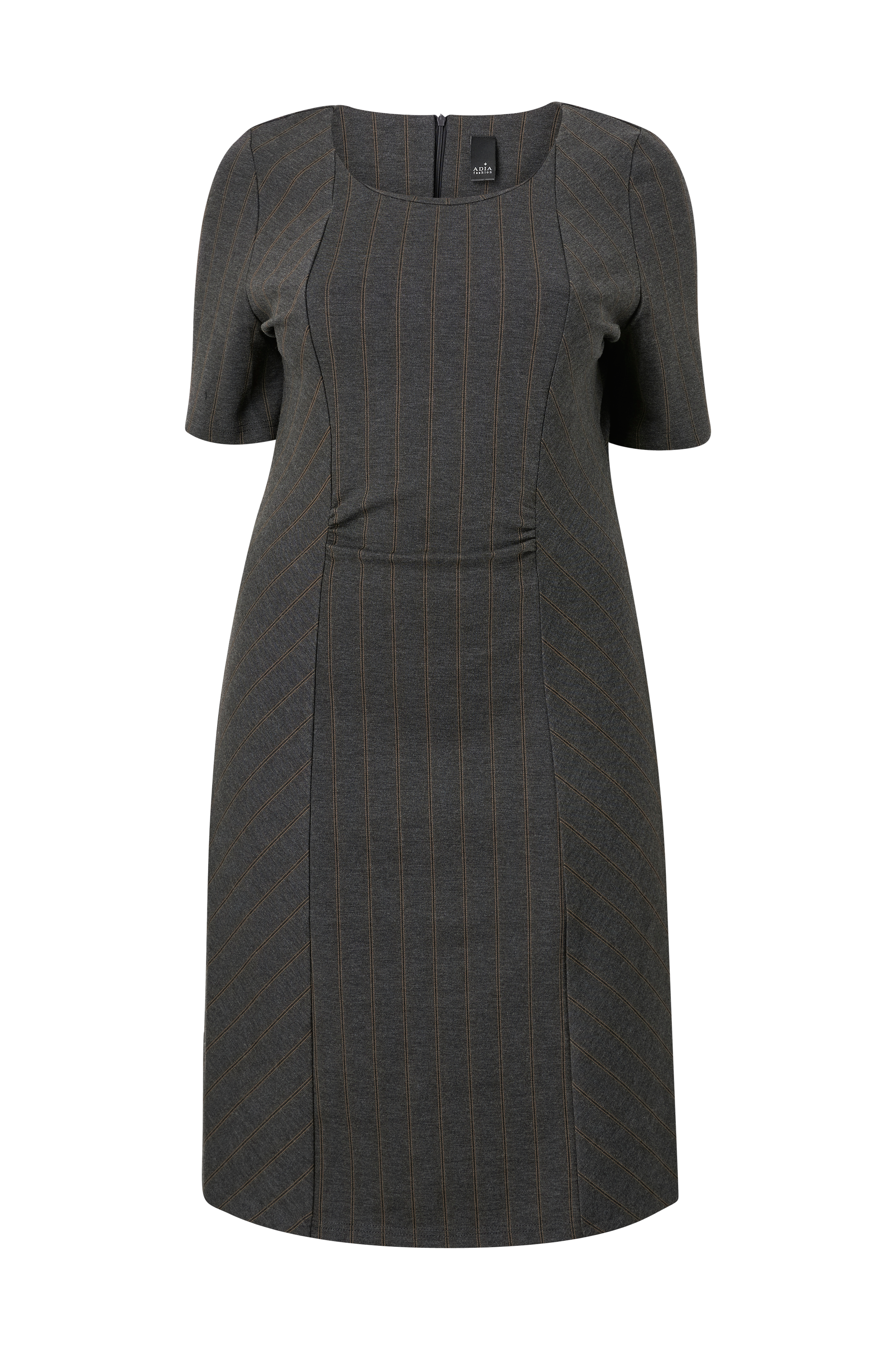 • Let, figurformede model med drapering foran• Rund hals• Skjult lynlås i ryggen• Kort ærme• Længde: 115 cm i størrelse S
