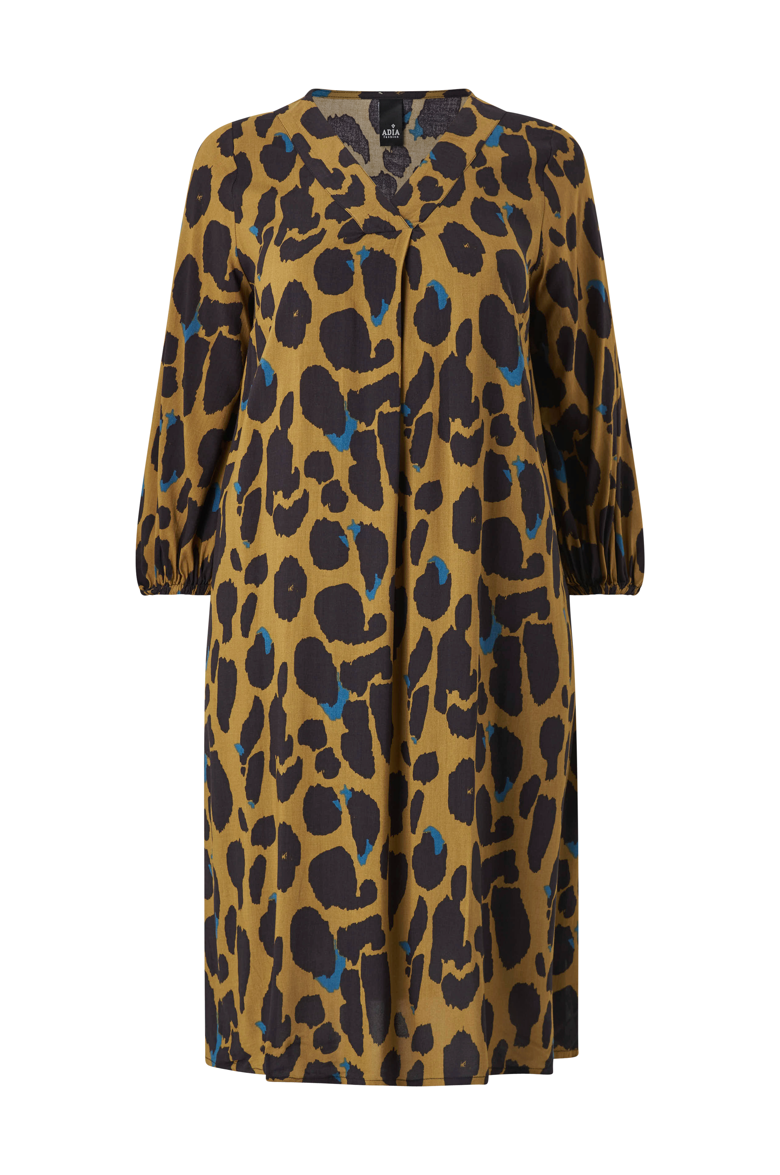 • Mønstret kjole i viskose• Afslappet pasform• V-formet halsudskæring• Bølgeformet detalje midt foran• Ballonærmer med elastik ved manchetterne• Store størrelser• Længde: 111 cm i størrelse S