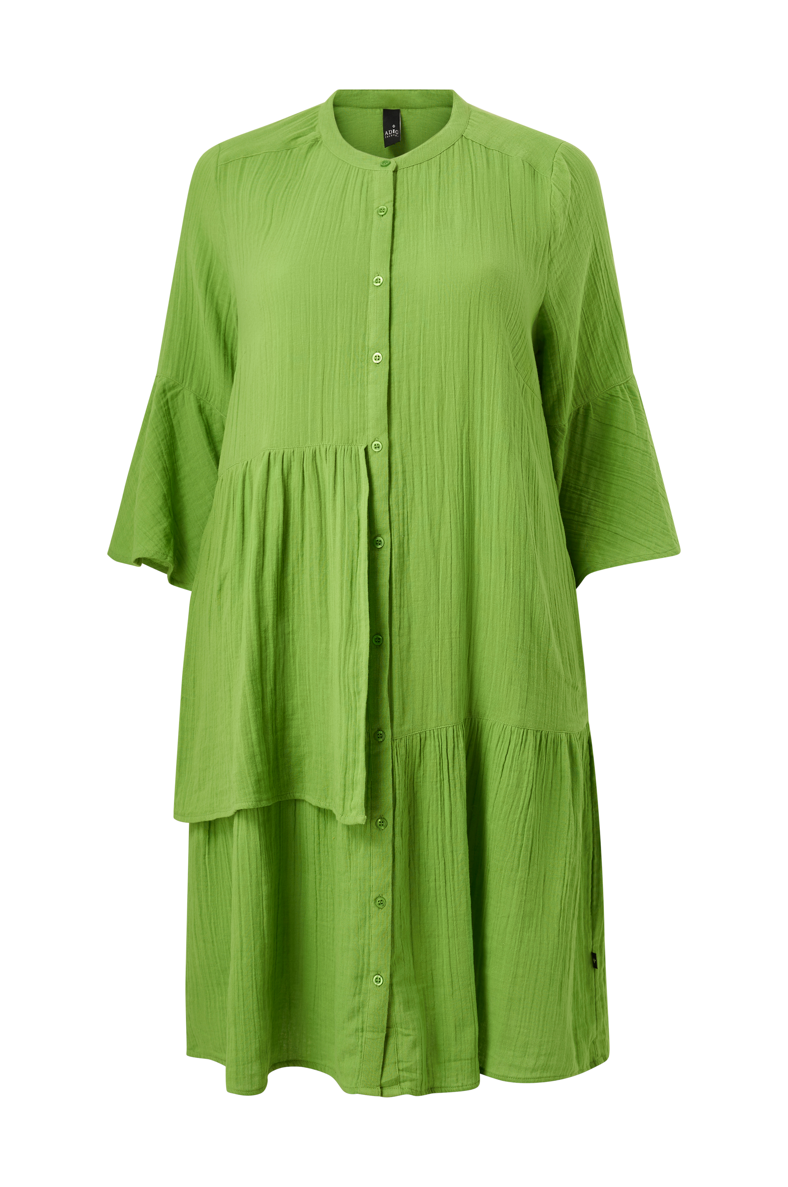 • Kjole i bomuld• Gennemknappet model• Nedsænkede skuldre• Halvlange, brede ærmer• Sidelommer• Detalje med dobbelte lag rundt om den ene side• Længde: 112 cm i størrelse S
