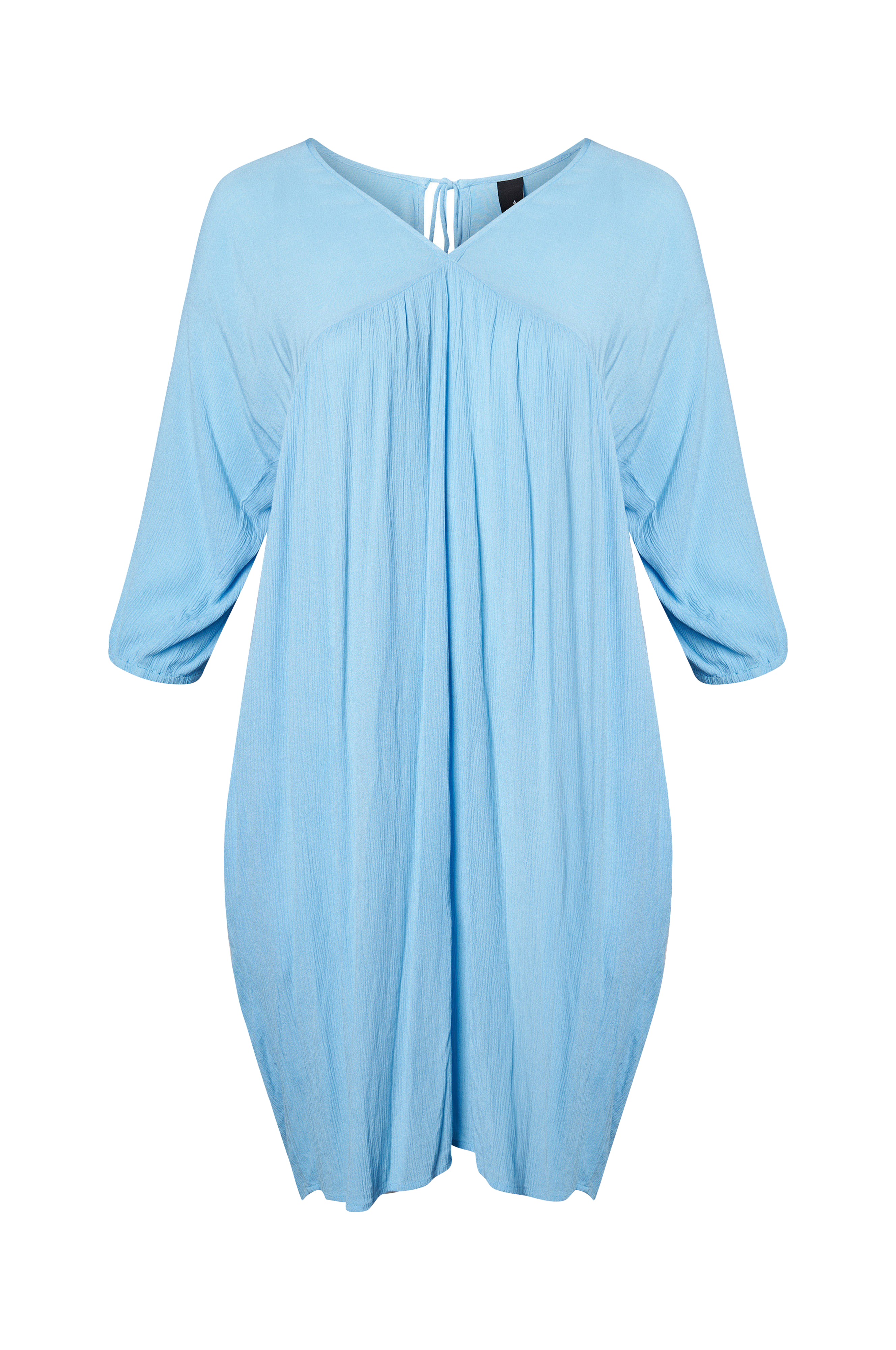 • V-udskæring• 3/4 lange ærmer med elastiske manchetter• Ventilation med bindebånd i nakken• Lommer i siderne• Rynket kvalitet• Store størrelser• Længde: 117 cm i størrelse S