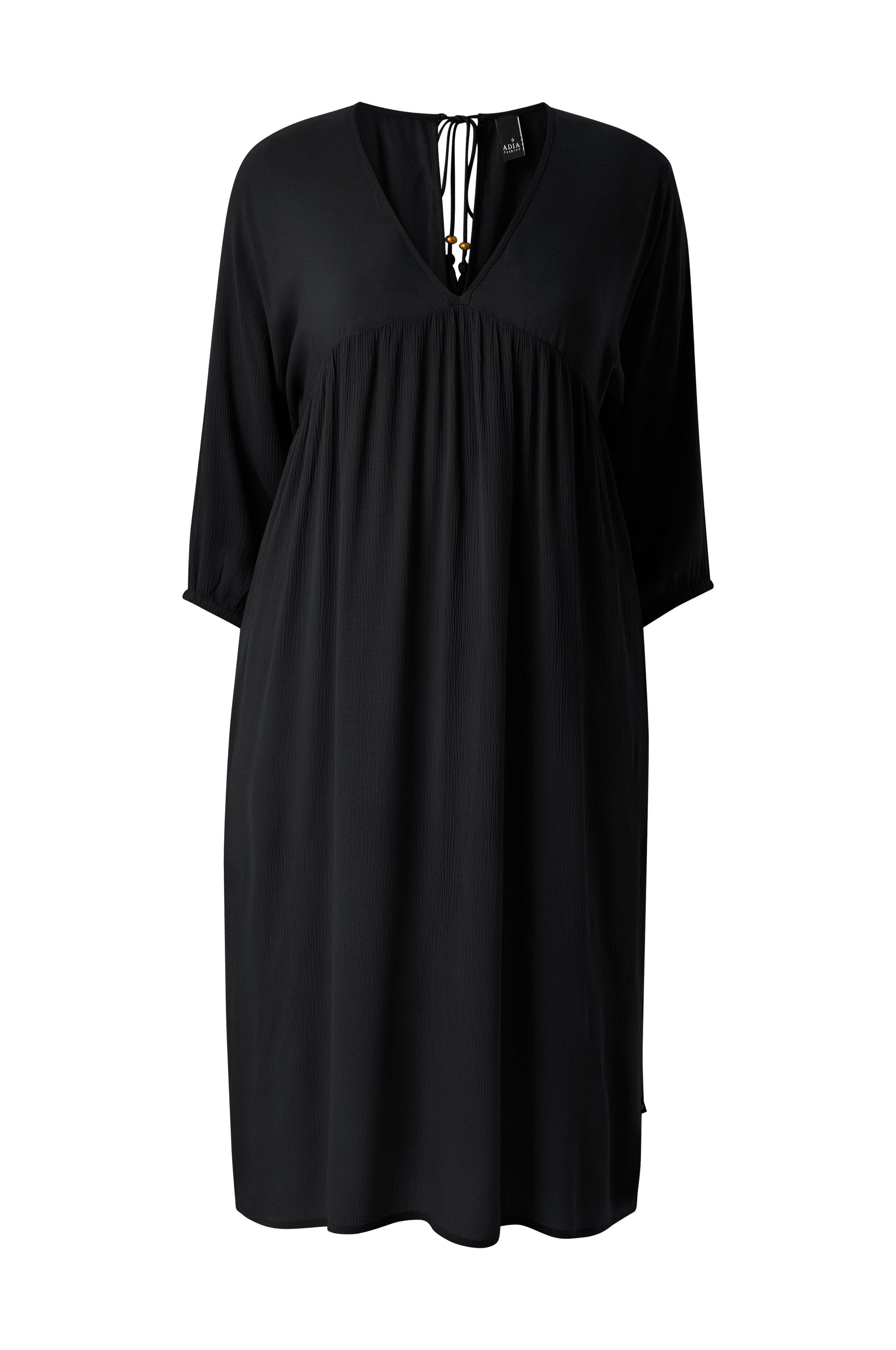 • V-udskæring• 3/4 lange ærmer med elastiske manchetter• Ventilation med bindebånd i nakken• Lommer i siderne• Rynket kvalitet• Store størrelser• Længde: 117 cm i størrelse S