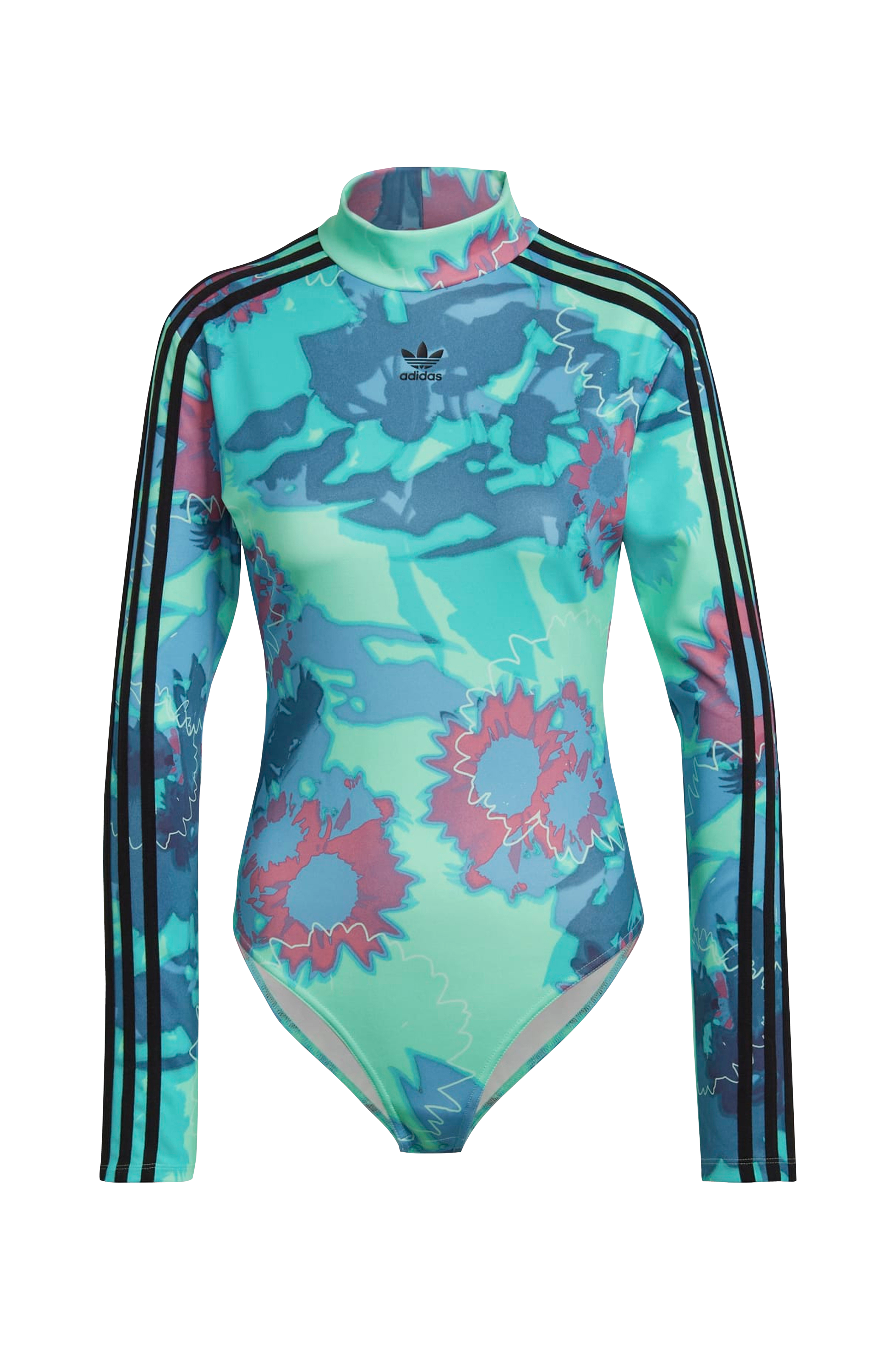 - Stretchmateriale- Smal pasform- Høj krave- Trykknapper i skridtet- Produktet indeholder genindvundet materiale, som genbruges for at reducere mængden af affald samtidigt med at der ikke anvendes nye ressourcer.