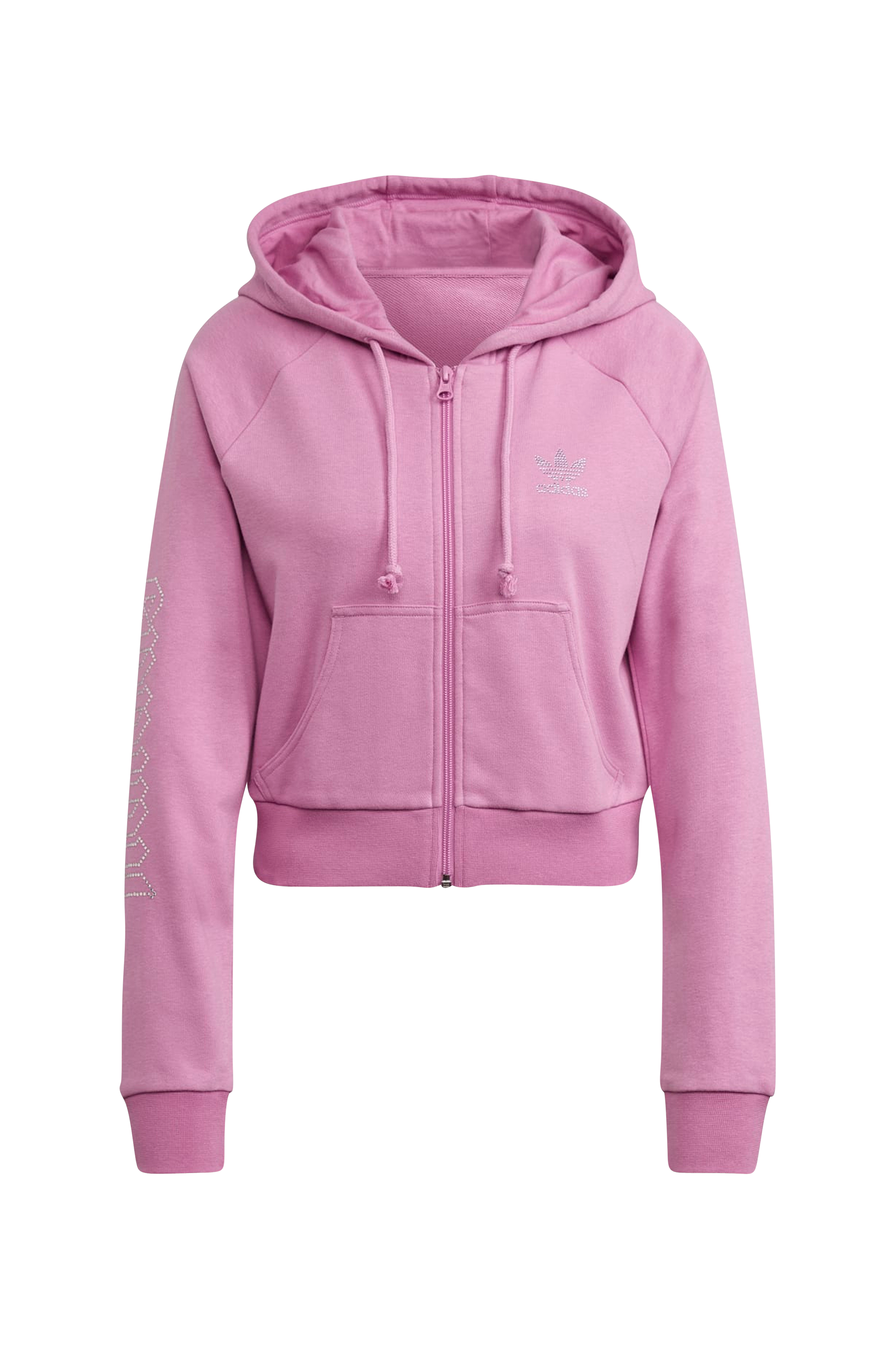 • Croppet model med lynlås foran• Hætte med træksnørre• Lommer foran• Manchet ved manchetterne og nederst• Skinnende logo på brystet