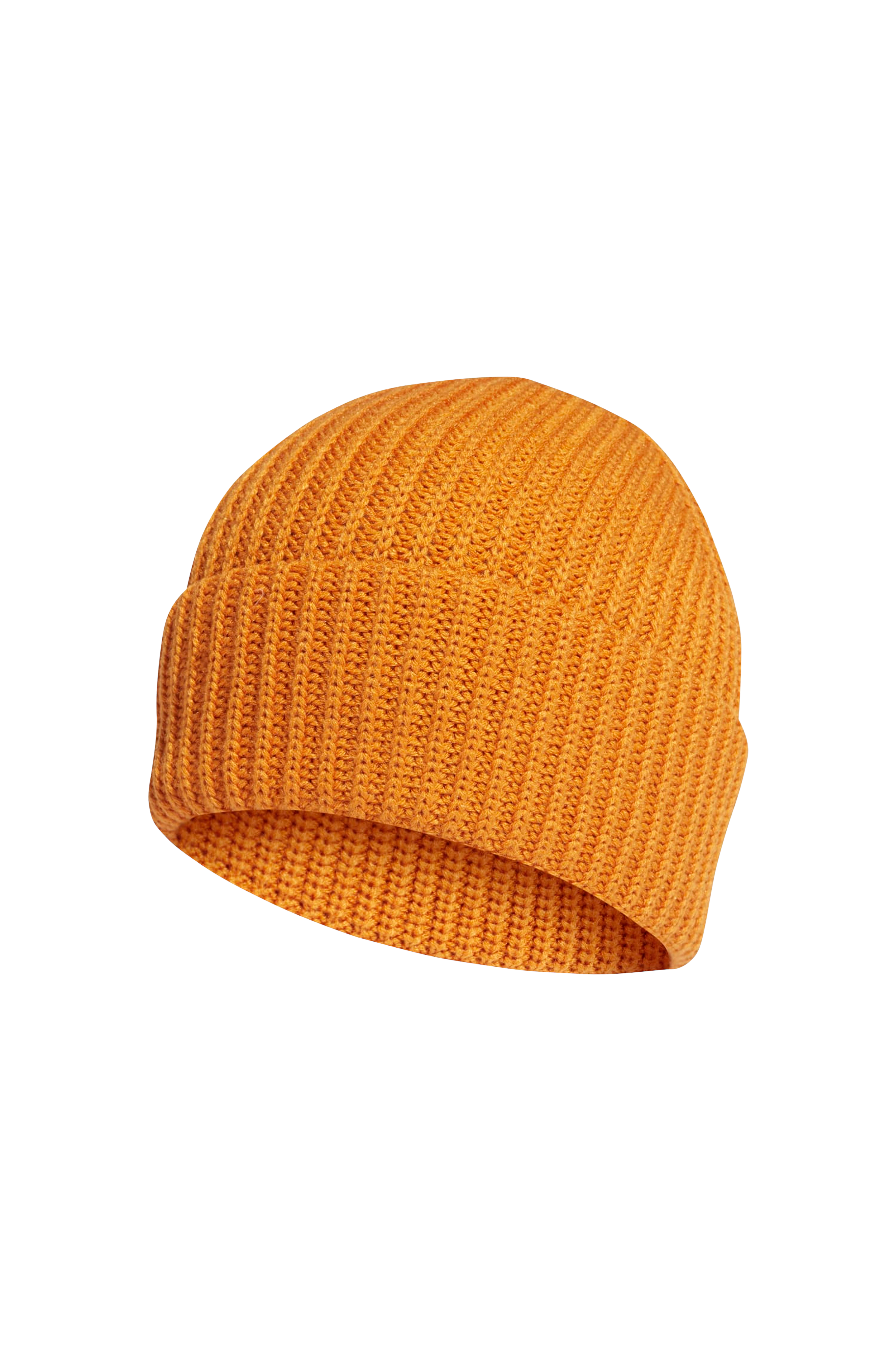 • Ribstrikket hue• Foldet søm med påsyet logo