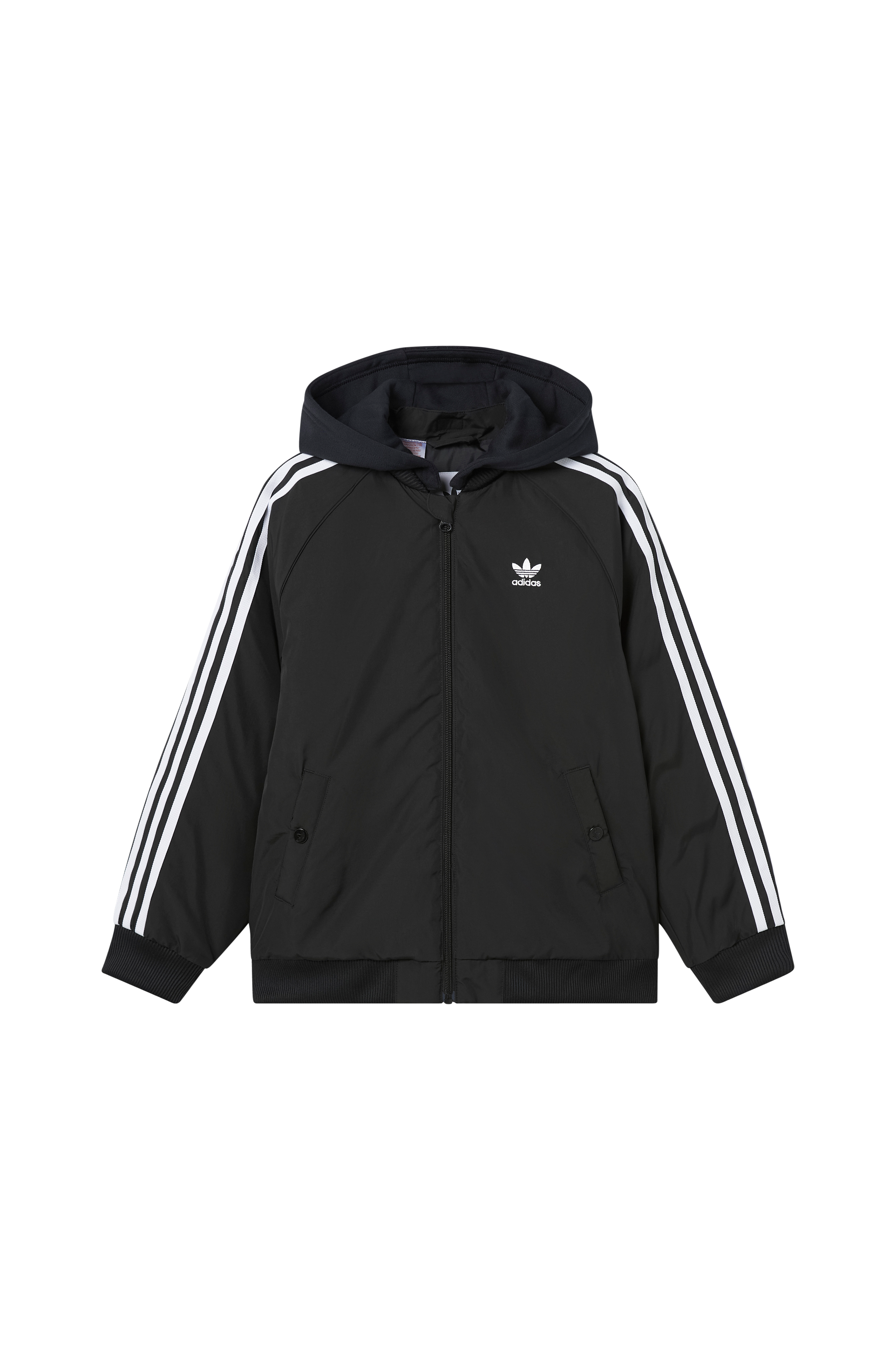 • Foret jakke• Aftagelig hætte i jersey• Ribbet krave• Lynlås• To lommer med trykknap• Ribmanchetter ved manchetterne og nederst