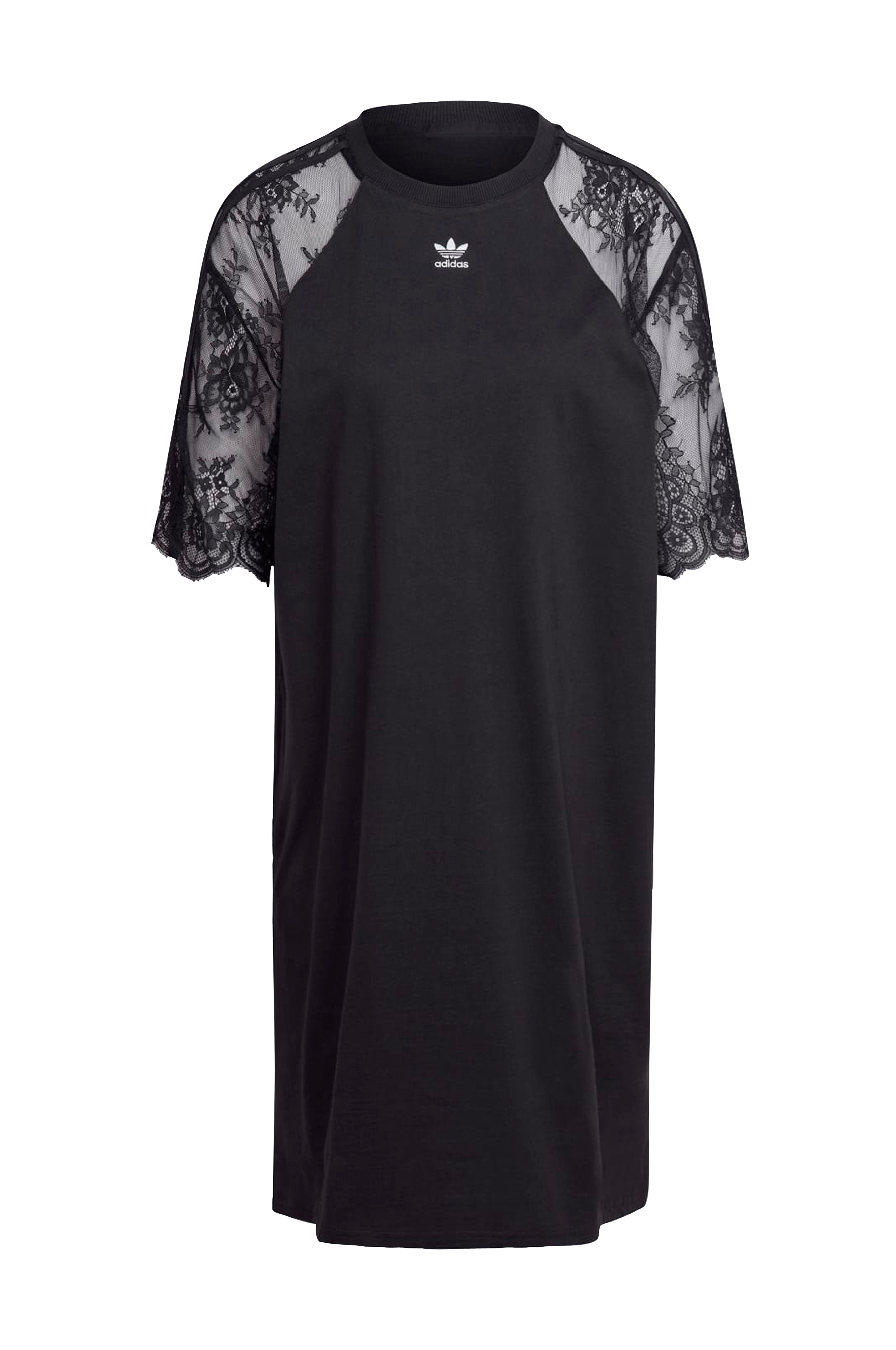 • T-shirtkjole• Transparent blonde på ærmerne og på skuldrene• Rund, ribbet halsudskæring• Løs pasform