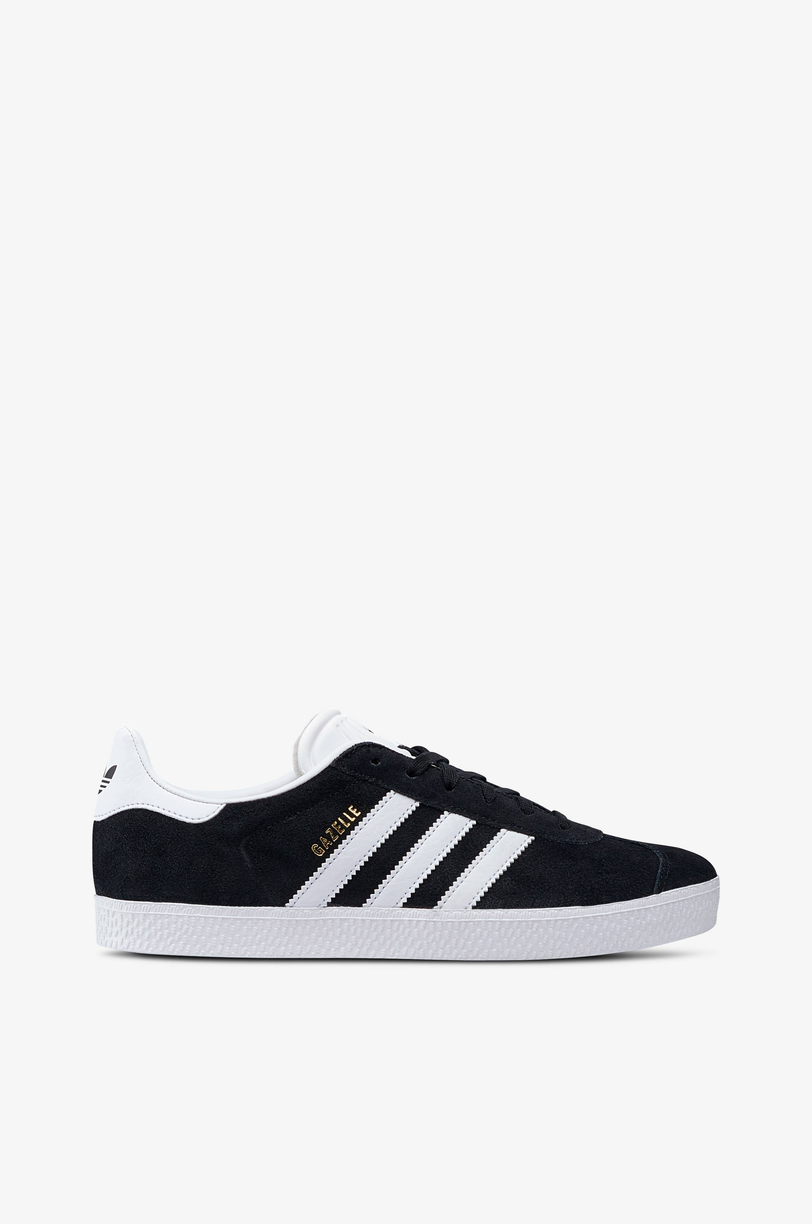 Sneakers Gazelle J fra adidas Originals er en ny udgave af klassikeren fra 1991. Overdelen i ruskind med kontrastfarvet 3-Stripes og hælkappe, er lige som den tidlige 90'er udgave. Tynd syntetpløs giver tight pasform. Trefoil-mærke midt bag på hælen og på pløsen. Vatteret kant og hælkappe. Tekstilfor med syntet i hælen og kanten. OrthoLite indlægssål. Ru sålekant.