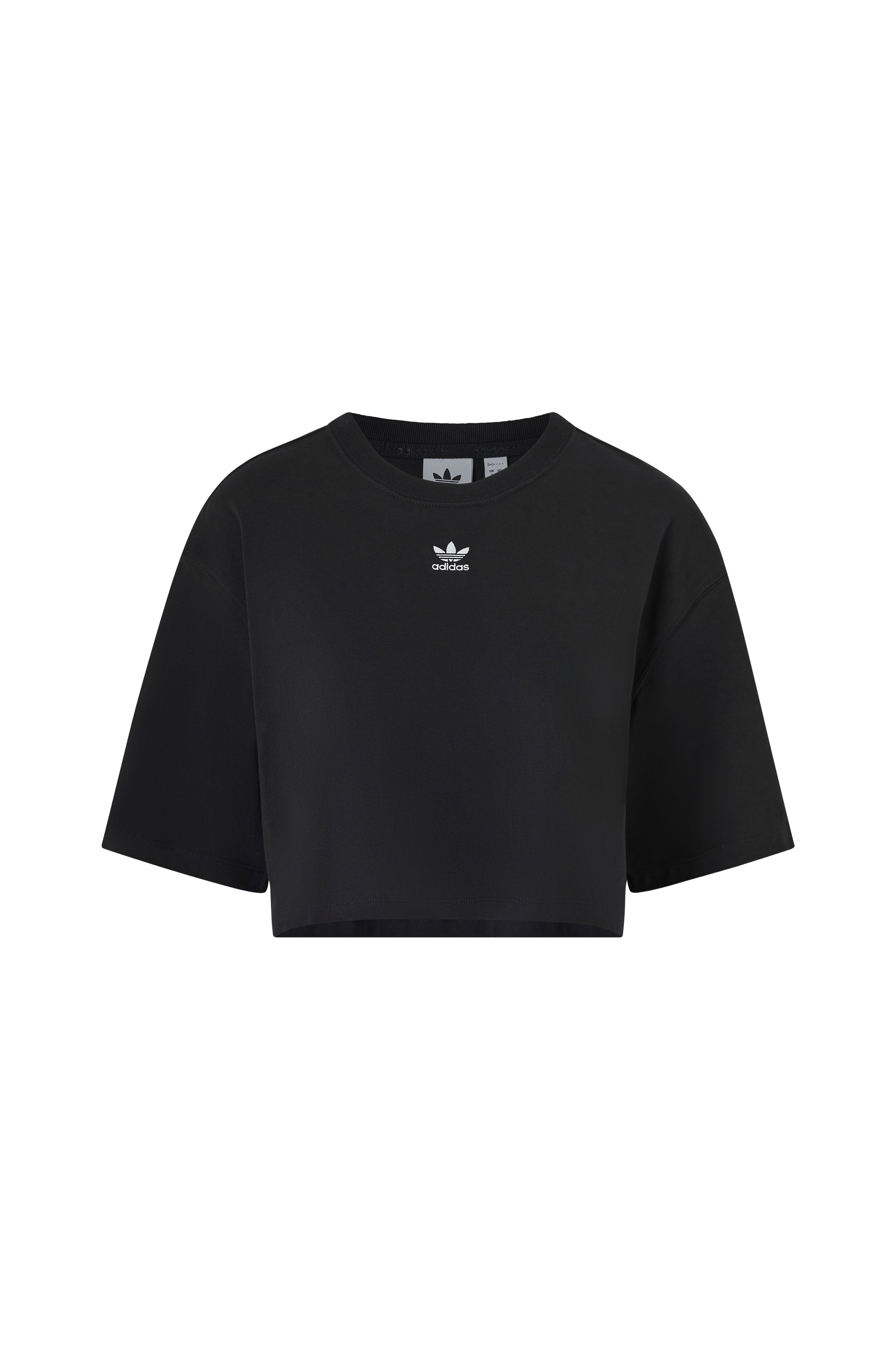 • Blød kvalitet• Løs pasform• Croppet længde• Rund halsudskæring• Halvlange ærmer