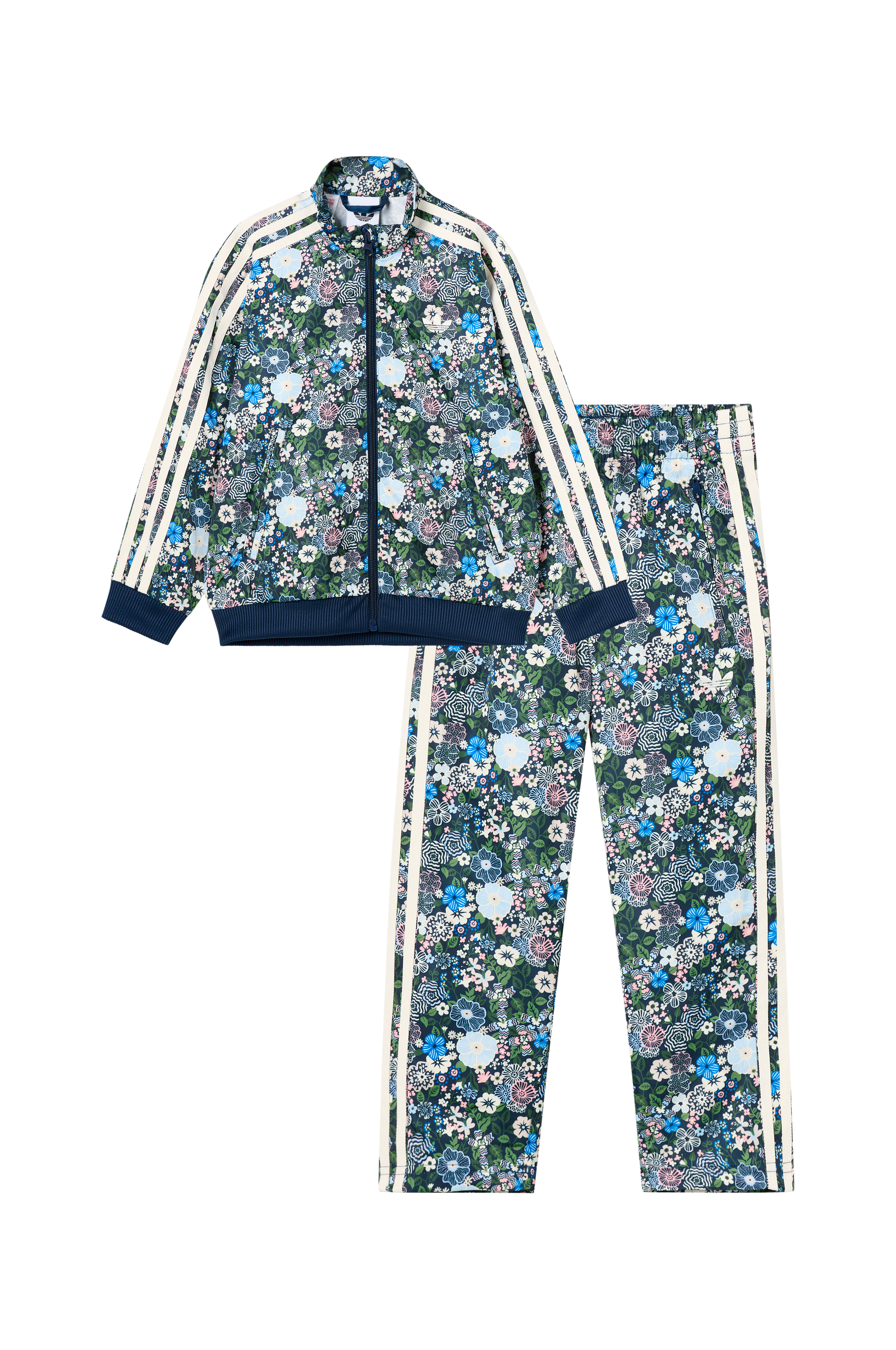 • Mønstret træningssæt• Jakke med høj krave• Lynlås• To lommer• Ribmanchetter ved manchetterne og nederst• Bukser med elastisk talje med træksnørre• Sidelommer