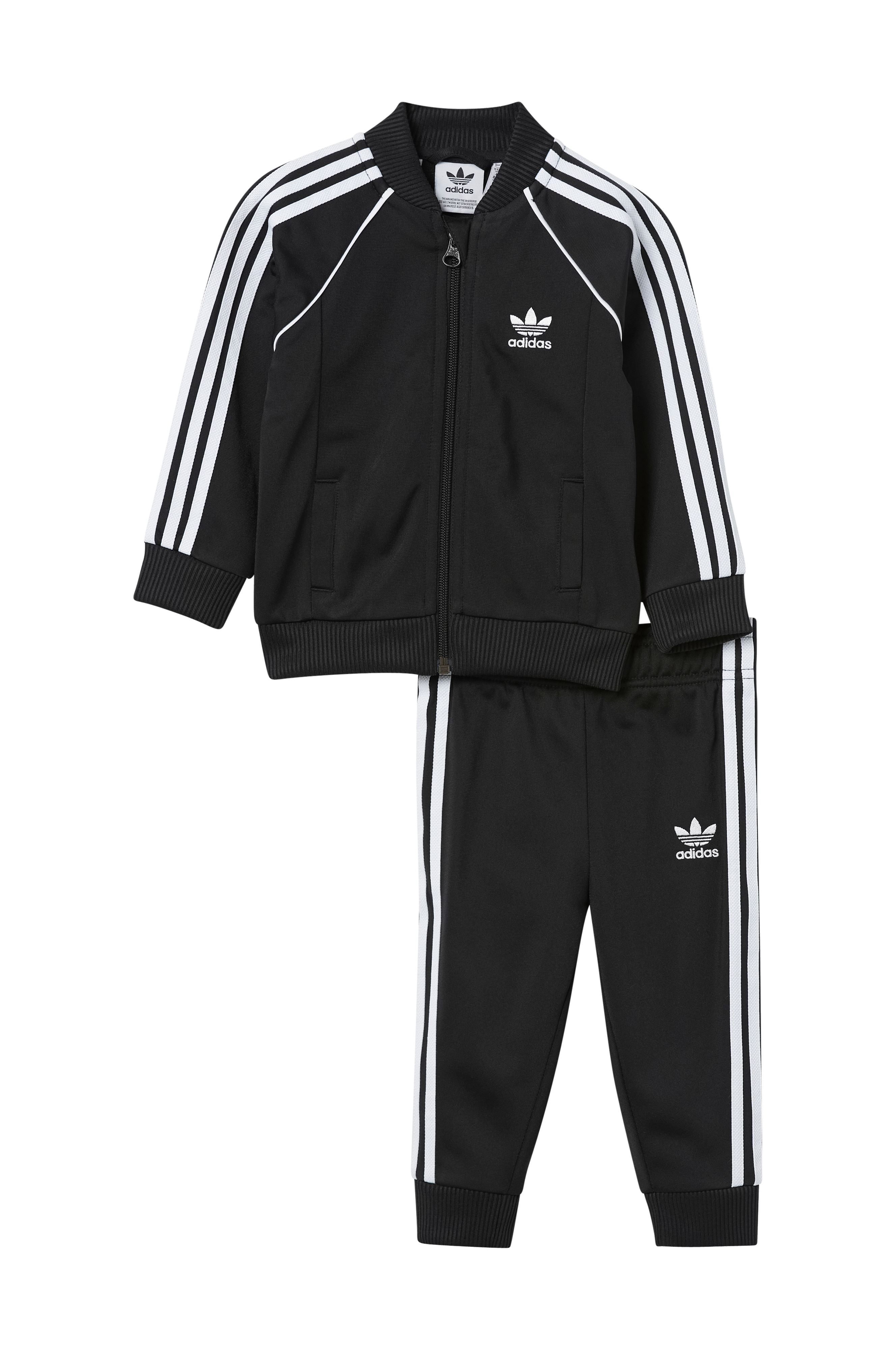 • Sporty træningssæt i blød, let skinnende jersey• Jakke med ribbet krave• Lynlås• Raglanærmer• To lommer• Ribmanchetter ved manchetterne og nederst• Bukser med elastisk talje med indvendig træksnørre• Ribmanchetter ved enden af benene