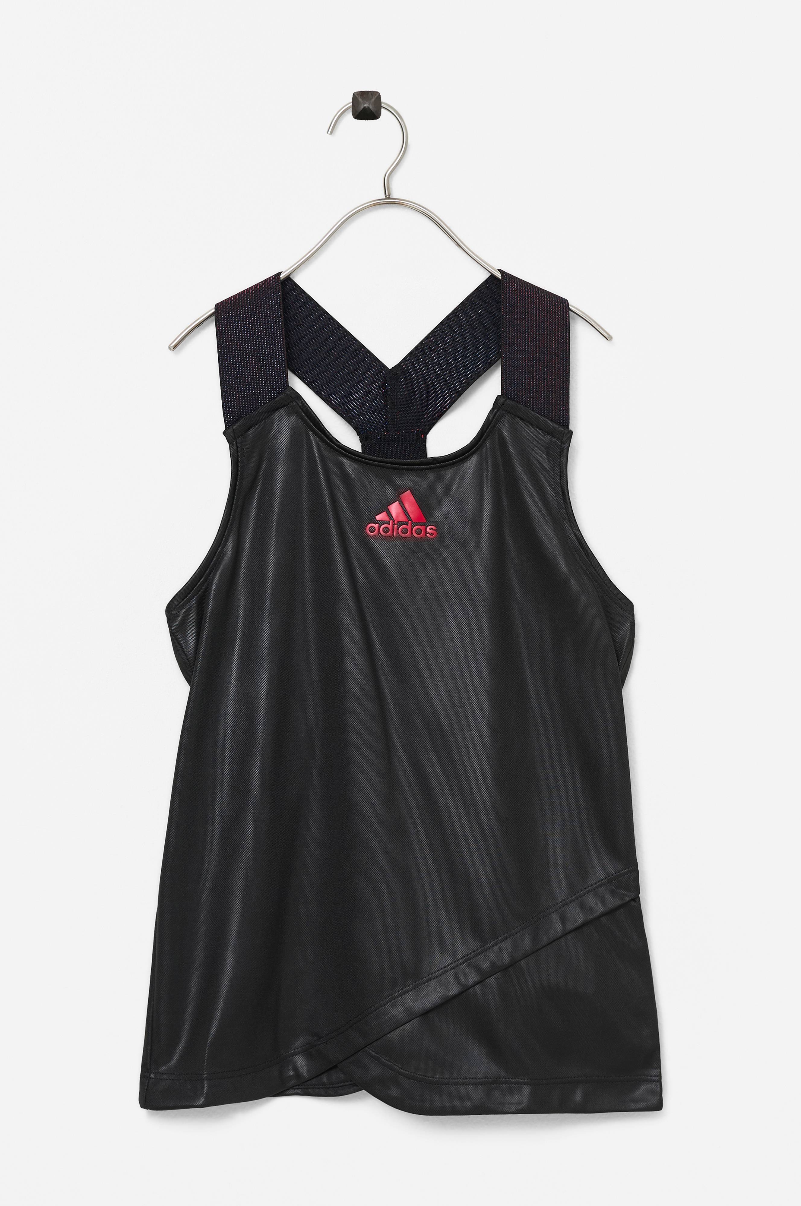 Padeltop/tennistop med smal pasform og diagonal lag-på-lag-effekt. Fremstillet i halvgennemsigtigt, skinnende materiale med fugtabsorberende AEROREADY. Elastisk, Y-formet bagstykke med glitrende elastikbånd.