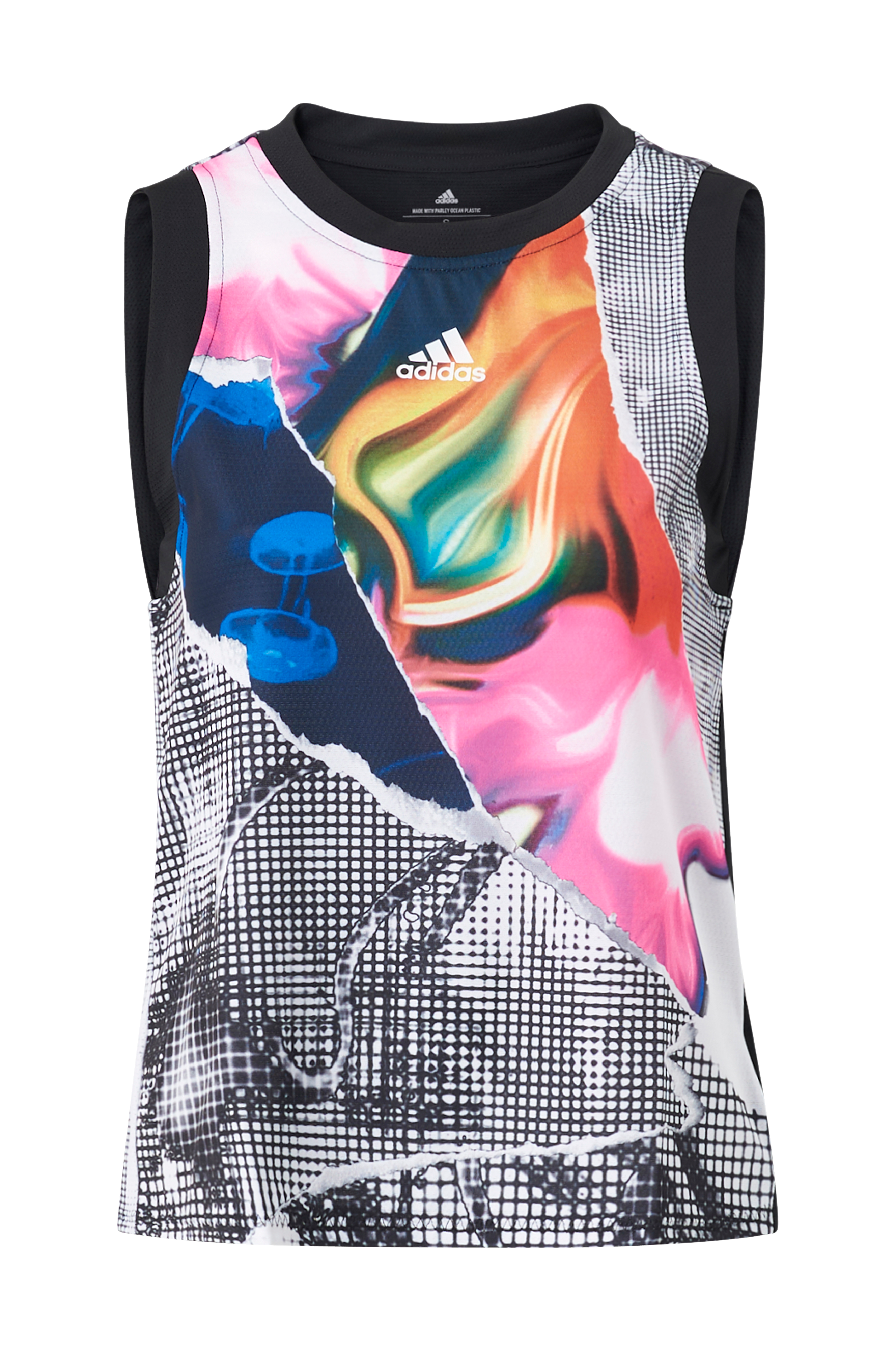 - Smal pasform- Rund hals- Forstykke: Dobbeltstikning i genindvundet polyester- Bagstykke: Mesh i 90% genindvundet polyester, 10% elastan- Fugtabsorberende AEROREADY- Overlappende søm bagpå