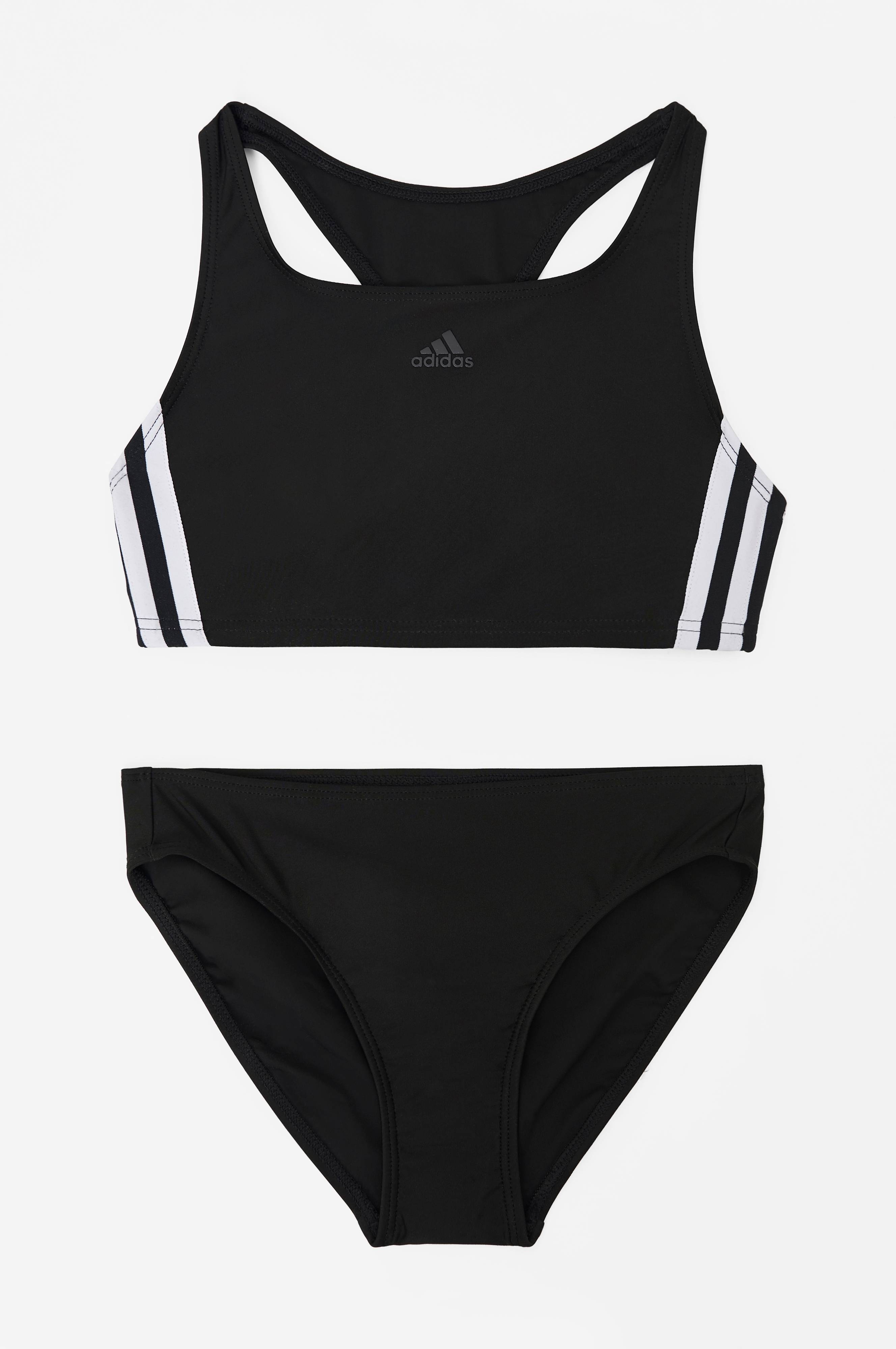 Bikini 3-stripes fra adidas Sport Performance giver total bevægelsesfrihed i poolen eller i havet. Overdelen har bryderryg og 3-Stripes i siderne. Trussen har mellemhøj benudskæring og er foret i skridtet. Bikinien er fremstillet i klorresistent Infinitex Fitness Eco-materiale med regenereret ECONYL®-garn fra genindvundne fiskenet og andet nylonaffald.