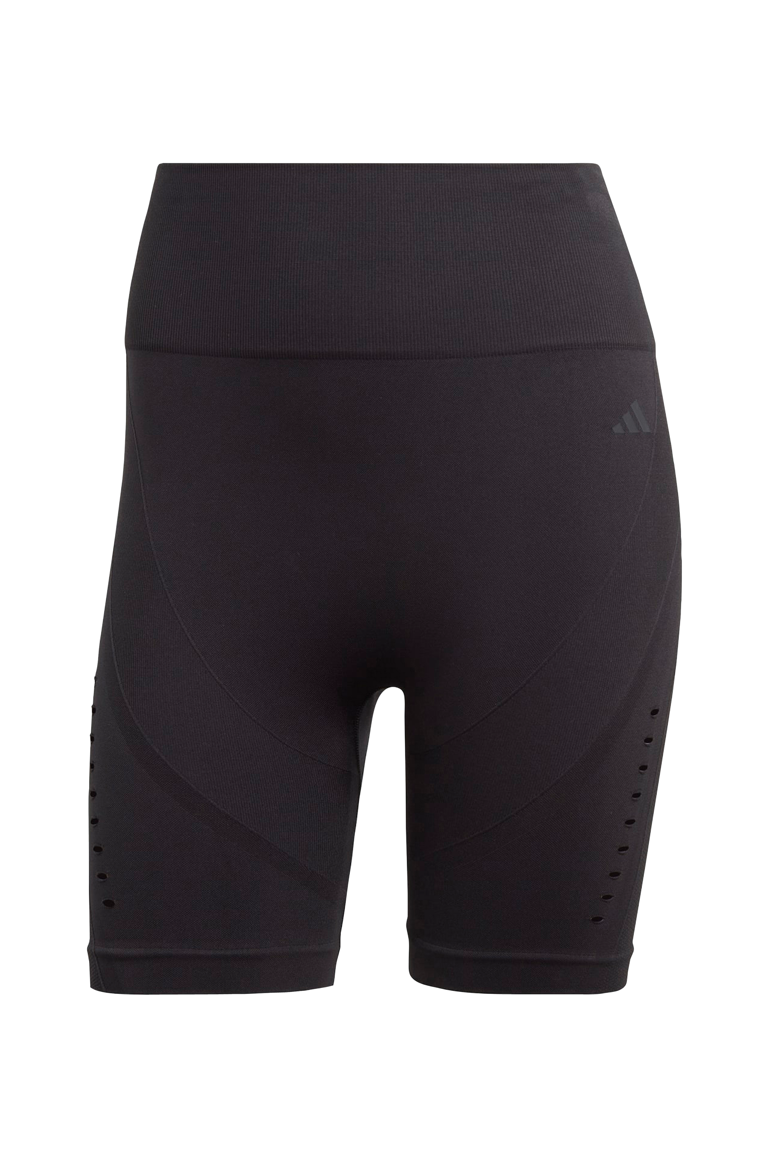 Korte yogatights i hurtigtørrende funktionsmateriale. Høj talje i rib. Dekorative sømme og perforering på benene.