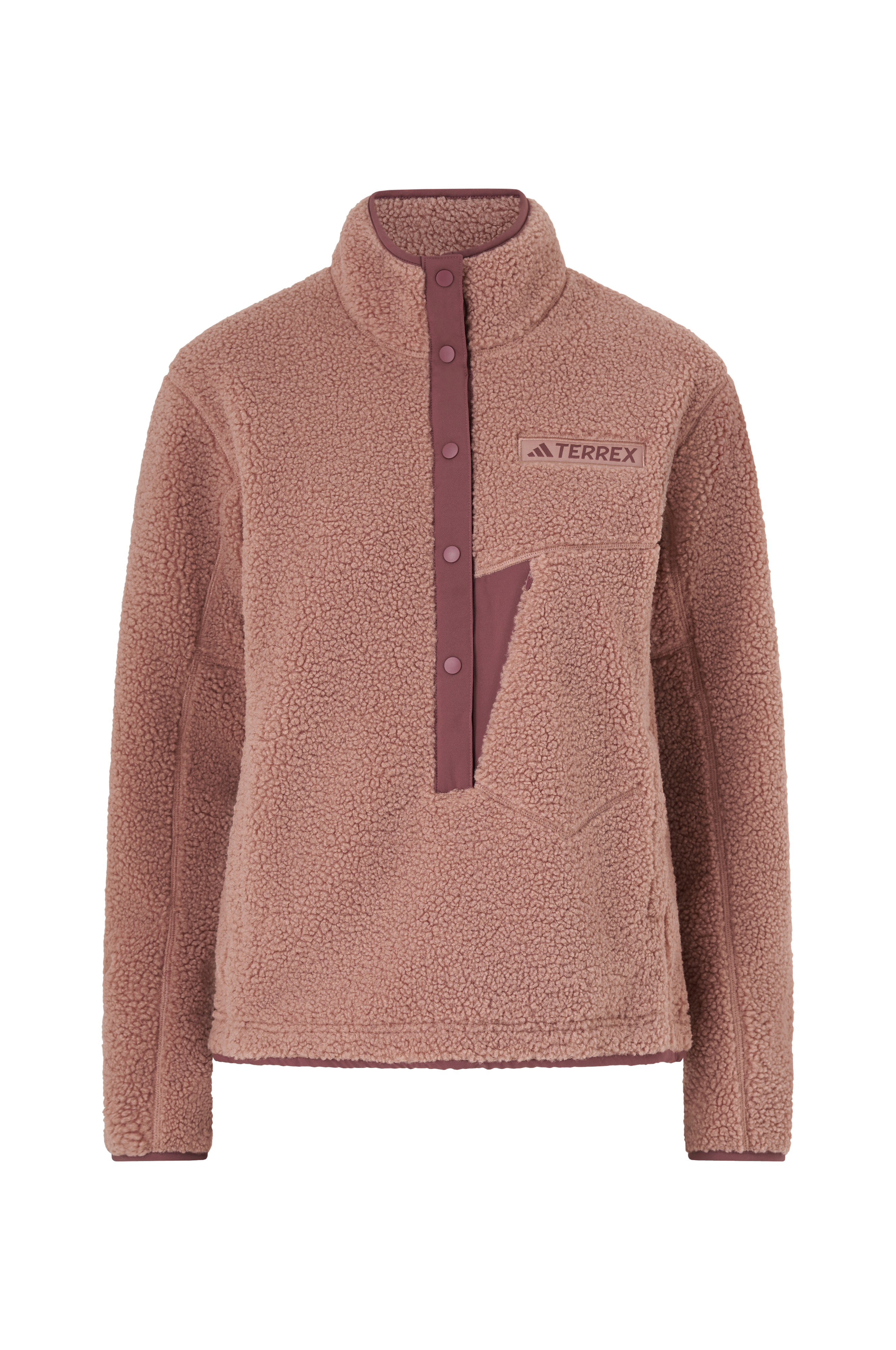 • Varmende Pullover i bamsefleece• Opretstående krave• Trykknapper foran• Elastiske båndkanter ved ærmeafslutningerne• Træksnørre ved nederste kant• Sidelommer med trykknapslukning• En brystlomme med lynlås
