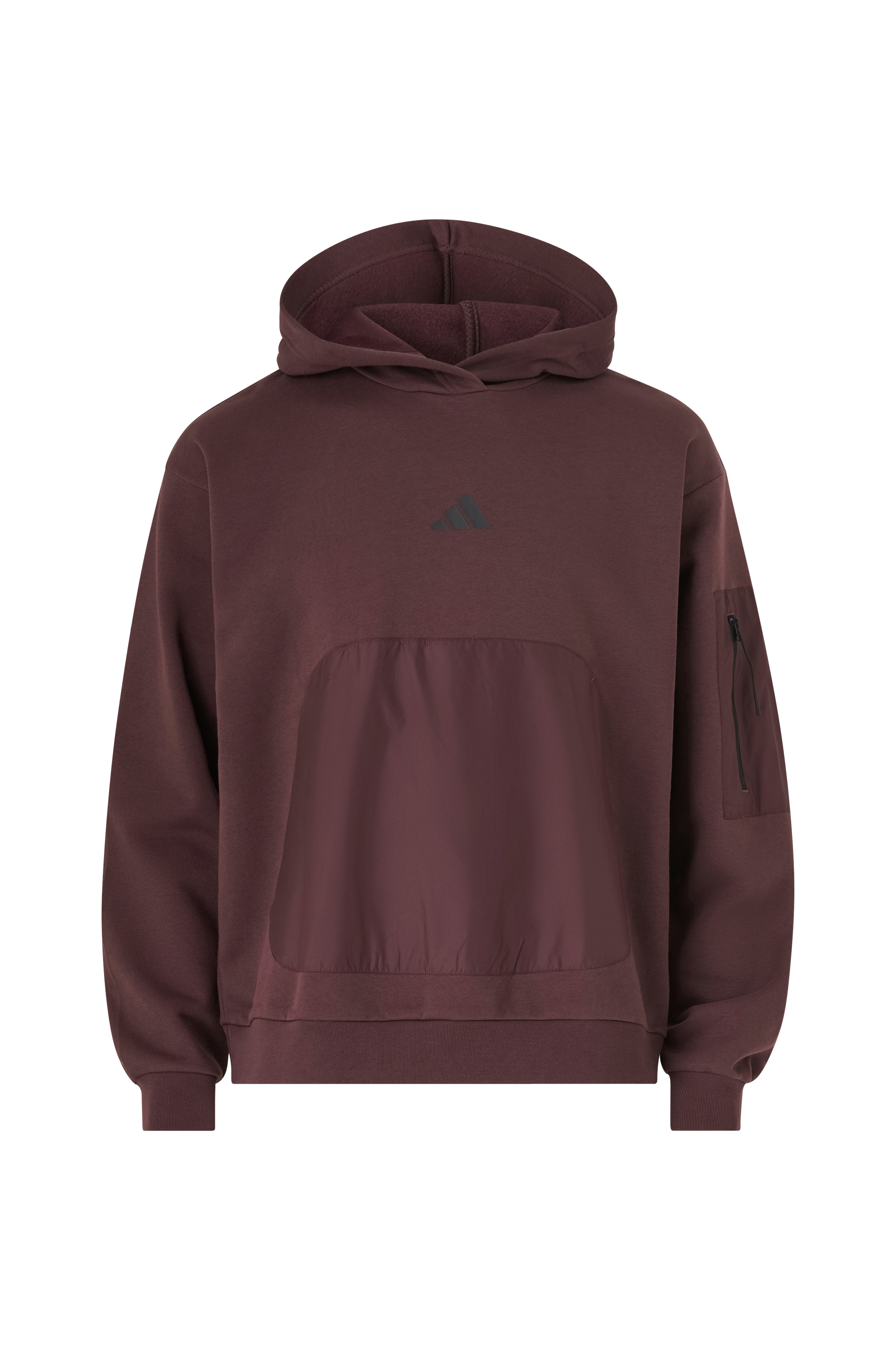 • Blød, børstet inderside• Kængurulomme med vævet stof• Vævet lomme på den venstre arm med lynlås• Ribmanchetter ved manchetterne og nederst