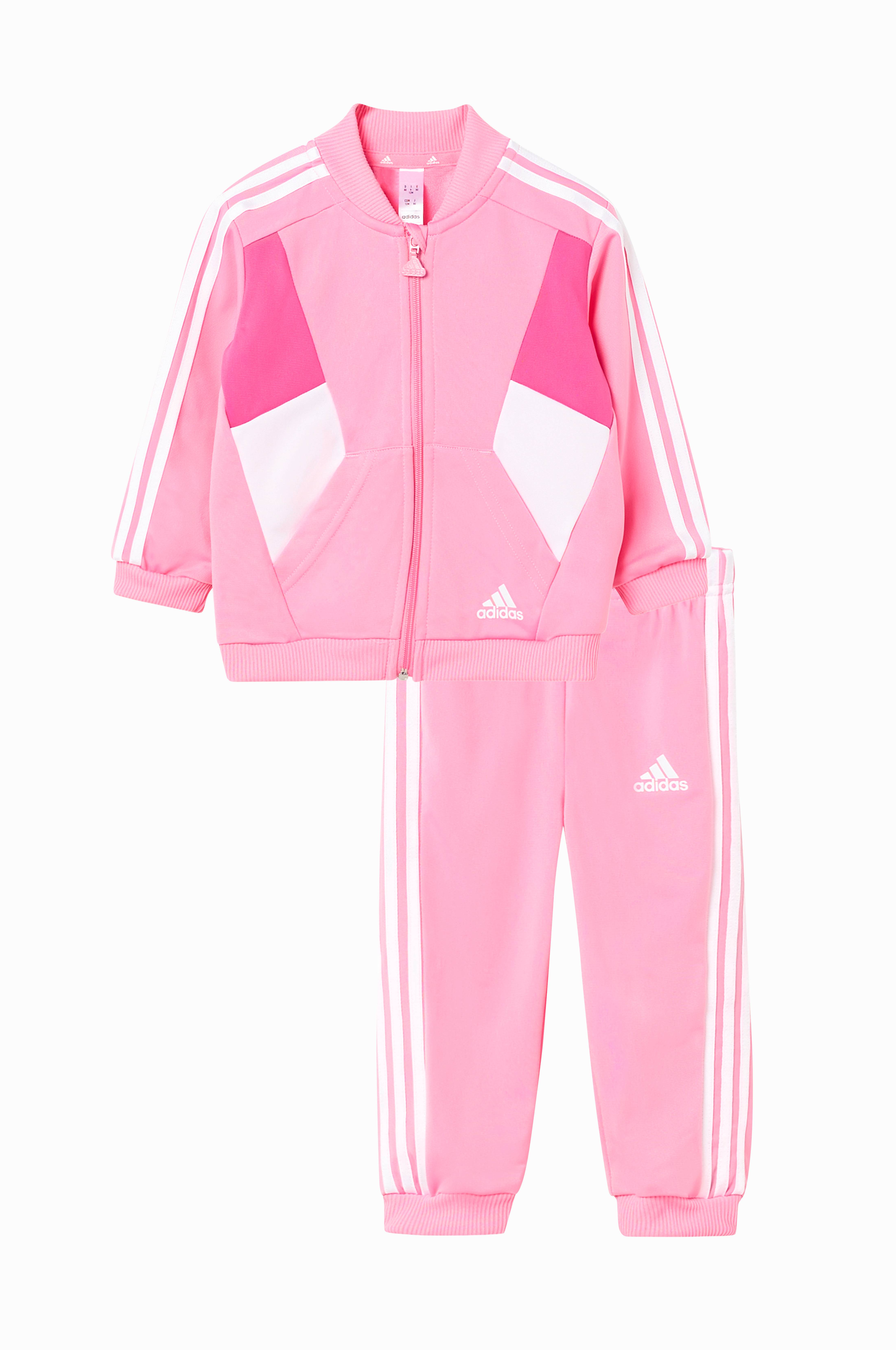 - Joggingsæt i let blank jersey- Trøje med lynlås- Lommer foran- Bukser med elastisk talje og indvendig løbegang- Ribkant i ærmekant, benkant og hals