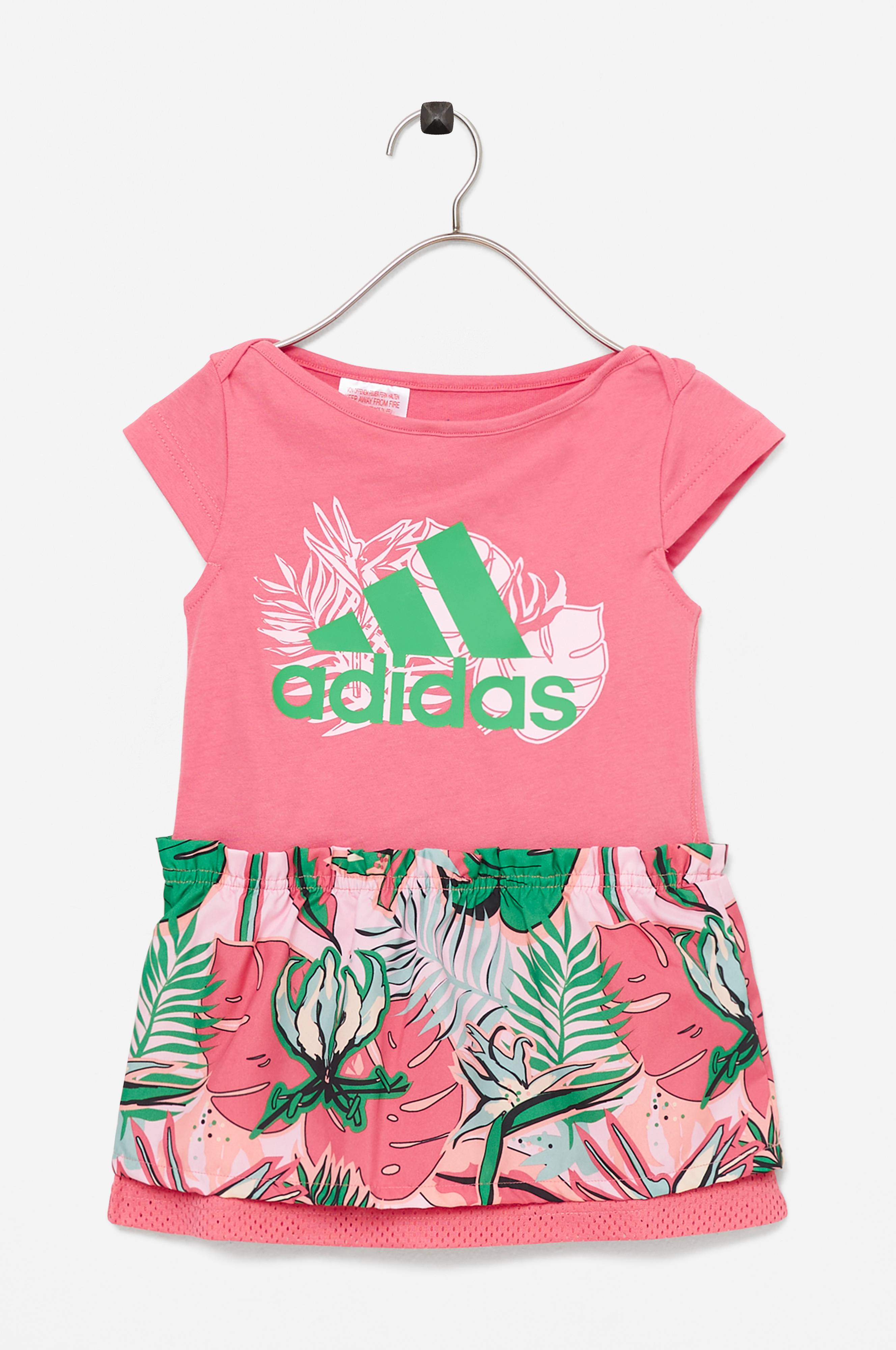 Kjole med overdel i blød jersey og blomstret underdel i vævet kvalitet. Underkjole i mesh. Rund hals og vingeærme.