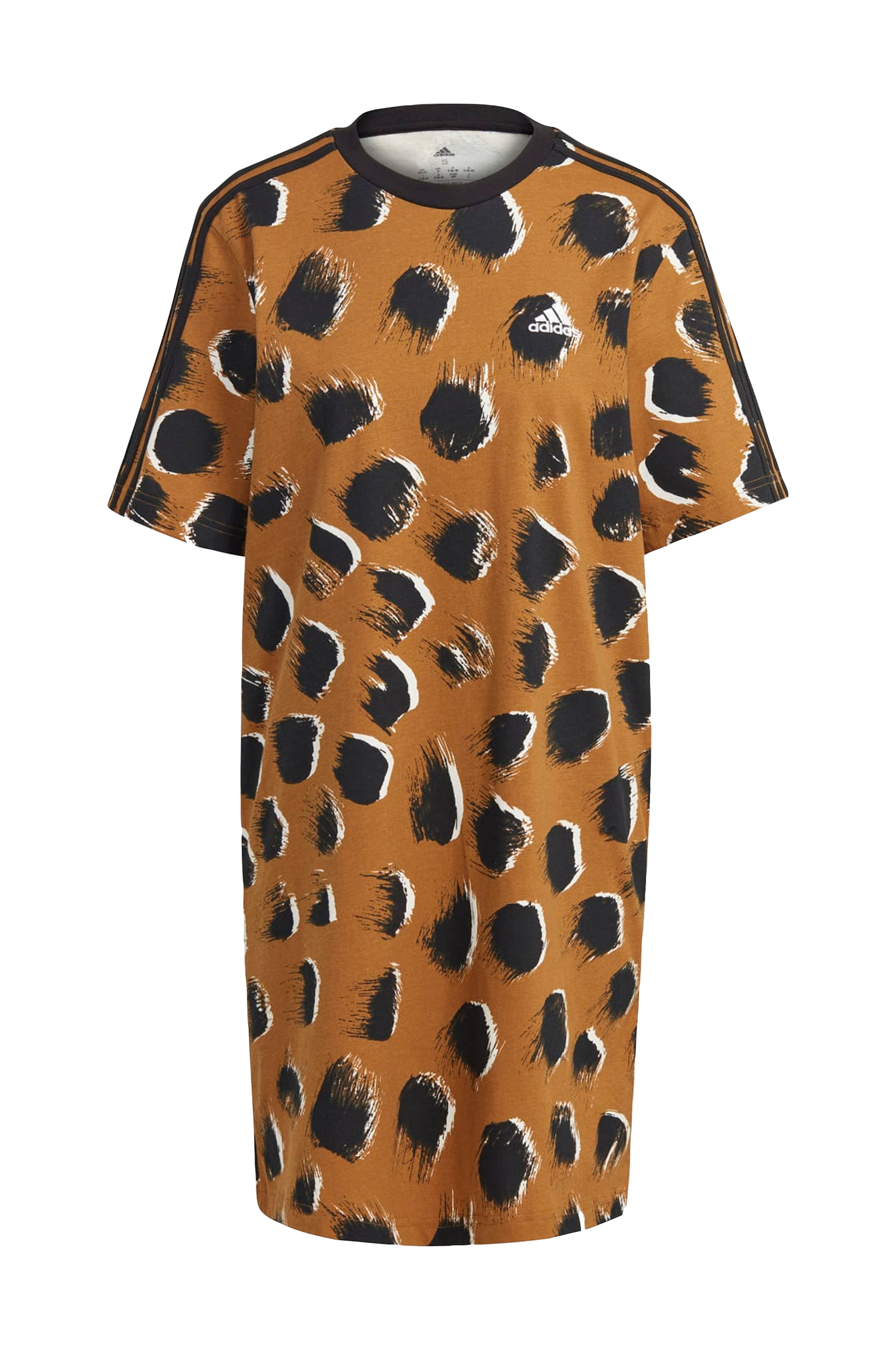 T-shirtkjole med rund hals og kort ærme. Længde ca. 90 cm i str. S.