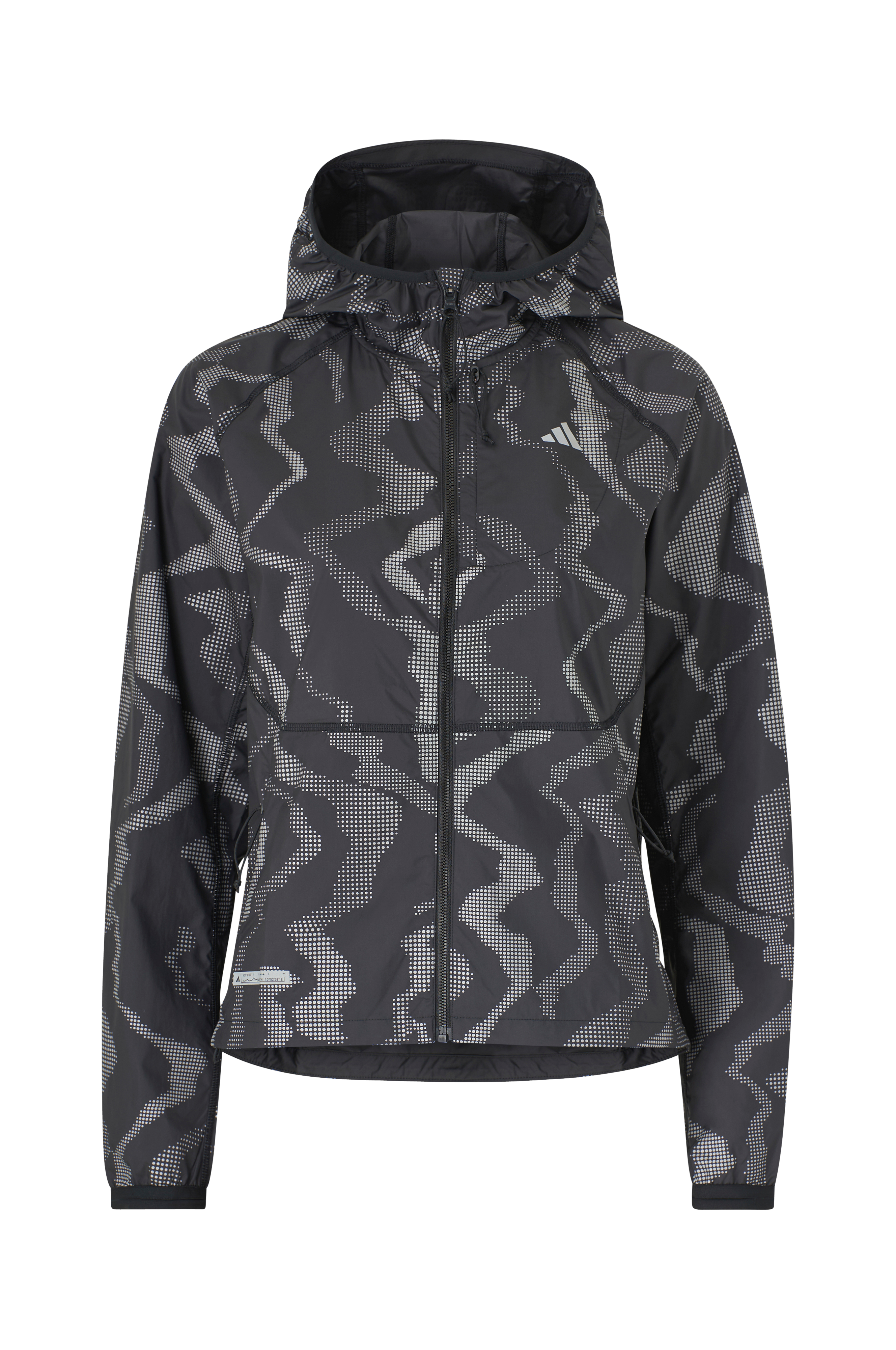 • Lige, vindtæt model • Lynlås med skavebeskyttelse ved kinden • Hætte med høj krave og fleksibel solskærm • Tre lommer med lynlås • Langt ærme med tommelfingerhul ved manchetterne • Træksnørre med stoppere ved nederste kant • Refleksdetalje • Længde: 64 cm i størrelse S