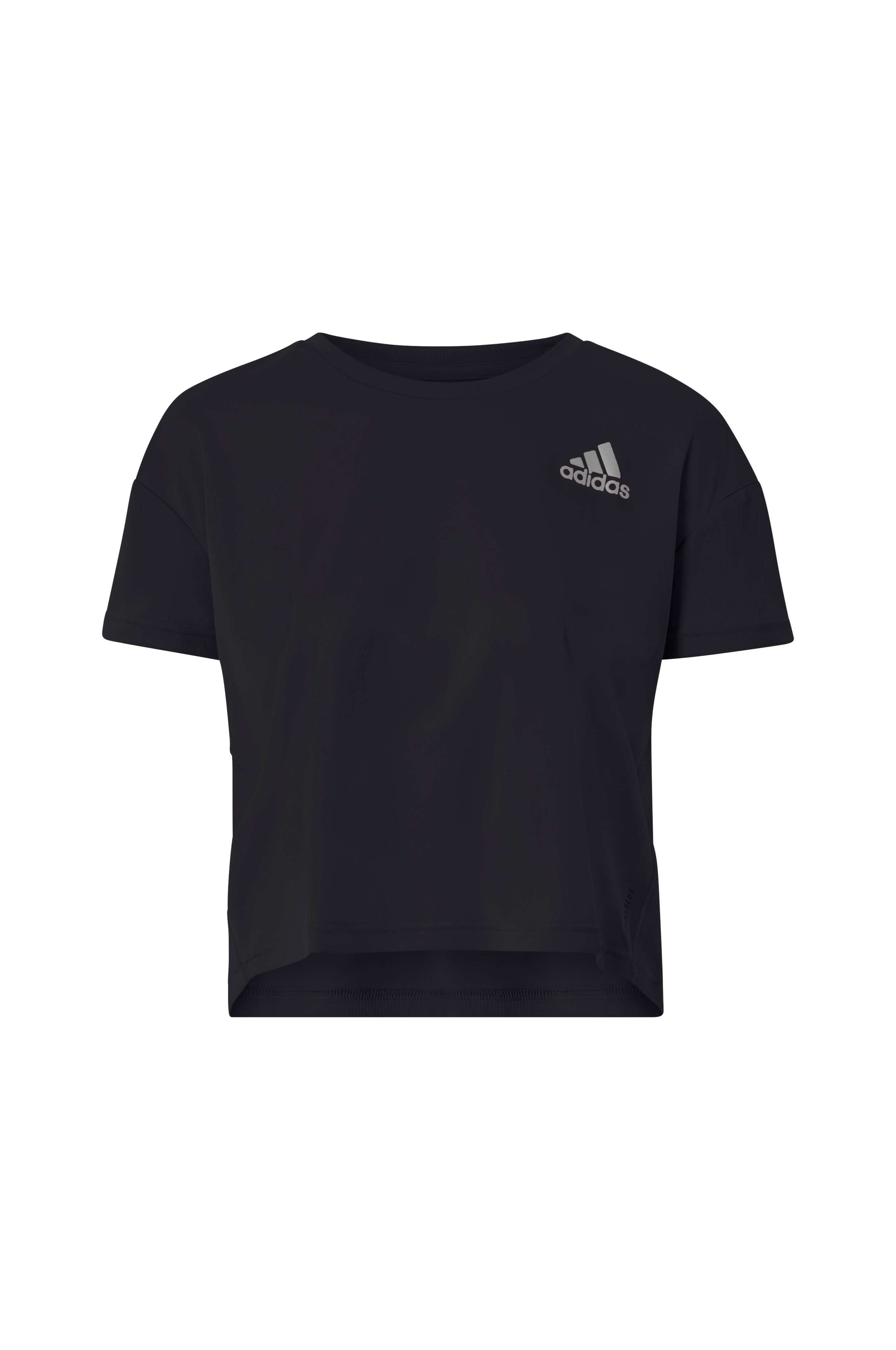 Løbertop P.Blue Tee W fra adidas Sport Performance i funktionsmaterialet Primeblue. Rund hals. Noget længere bagpå. Refleksdetaljer hele vejen rundt.