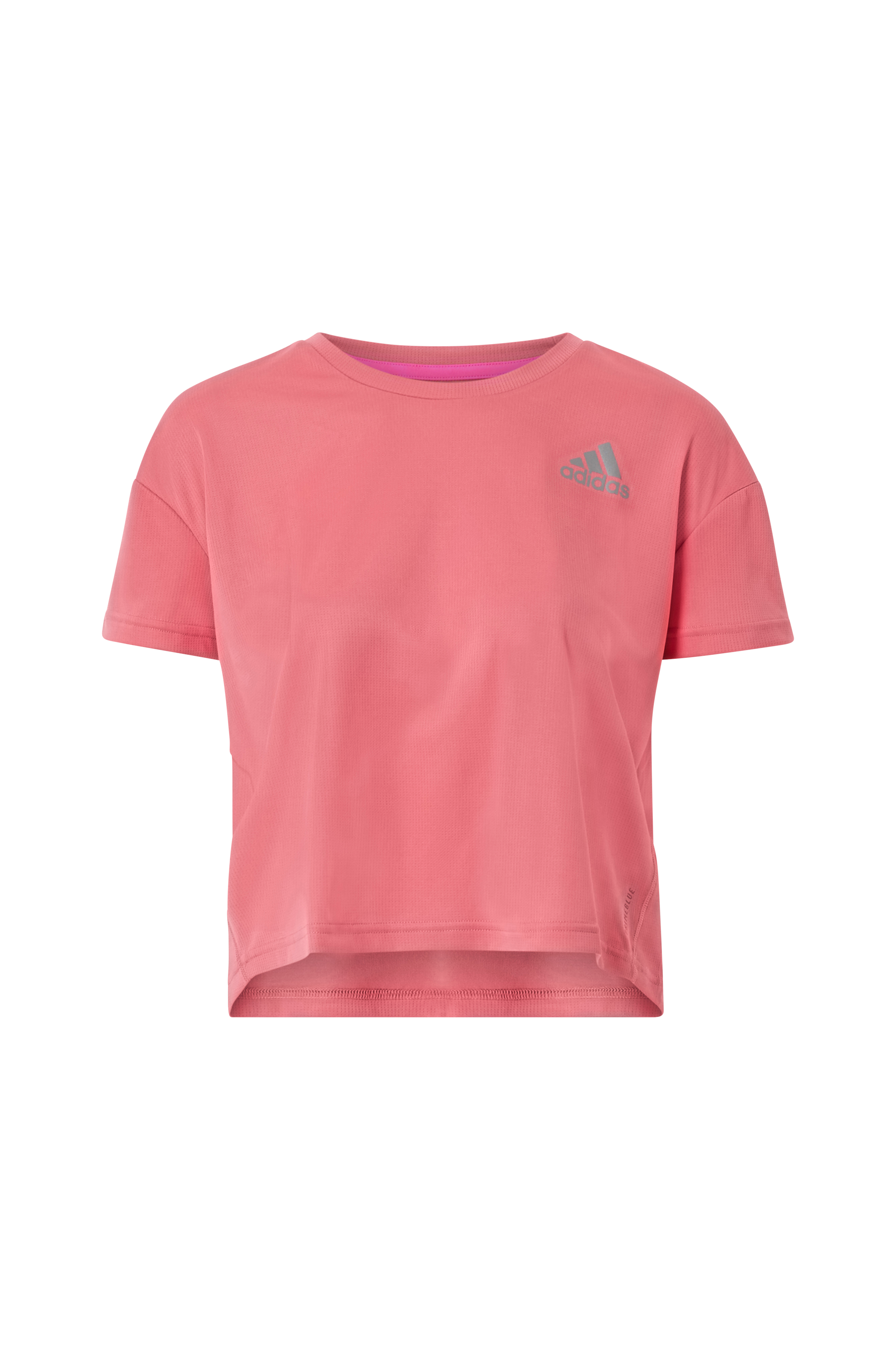 Løbertop P.Blue Tee W fra adidas Sport Performance i funktionsmaterialet Primeblue. Rund hals. Noget længere bagpå. Refleksdetaljer hele vejen rundt.