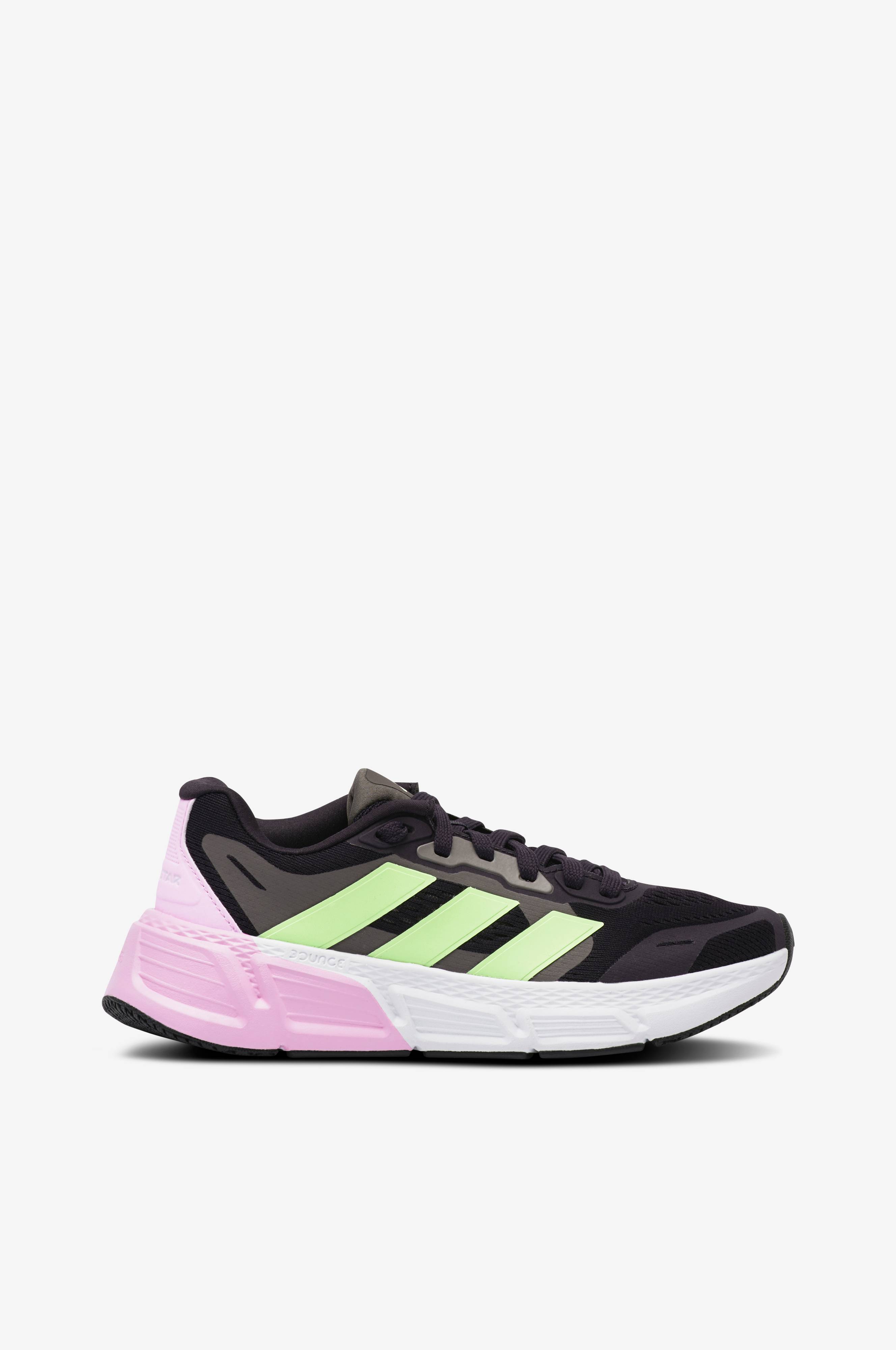 Løbesko med overdel i tekstil og vatteret skaft i Geofit. For af tekstil og udtagelig indersål. Mellemsål med dæmpende Bounce. Ydersål i gummi. Overdelen består af mindst 50% genindvundet materiale.