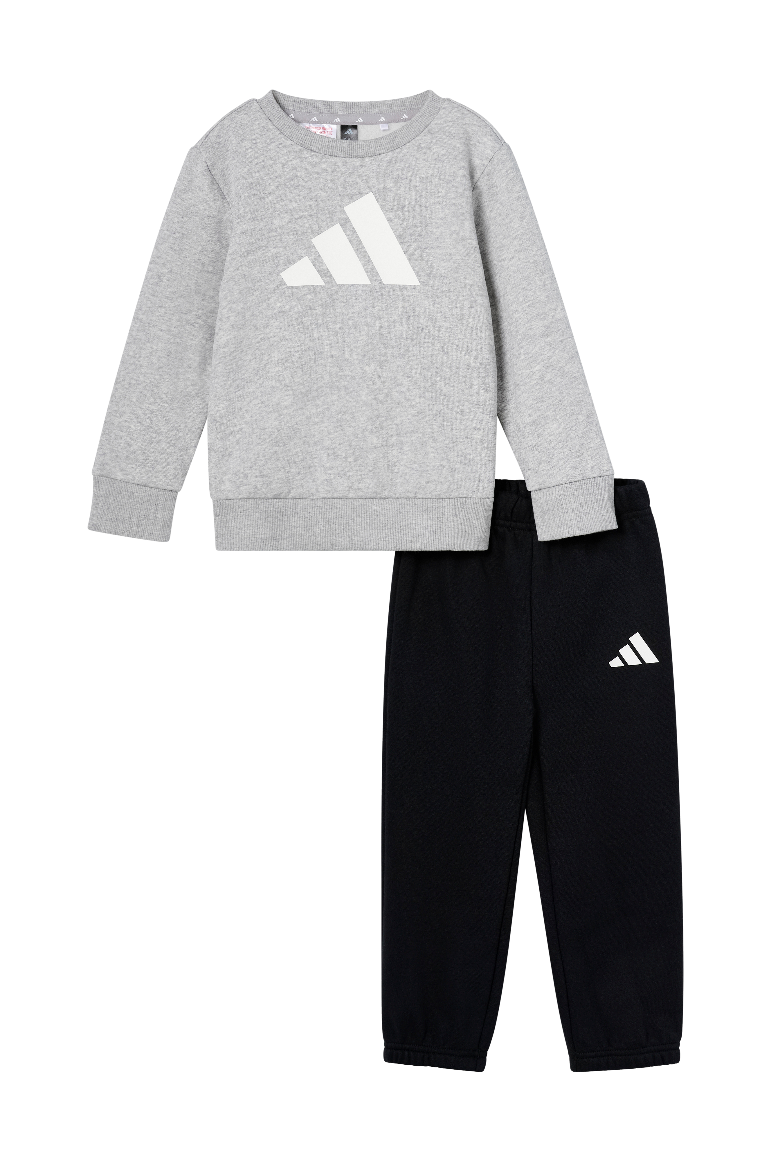 • 2-delt babysæt med sweatshirt og træningsbukser• Blød, børstet inderside• Trykknapper på en skulder• Ribmanchetter ved manchetterne og nederst• Træningsbukser med elastisk talje og elastik ved enden af benene