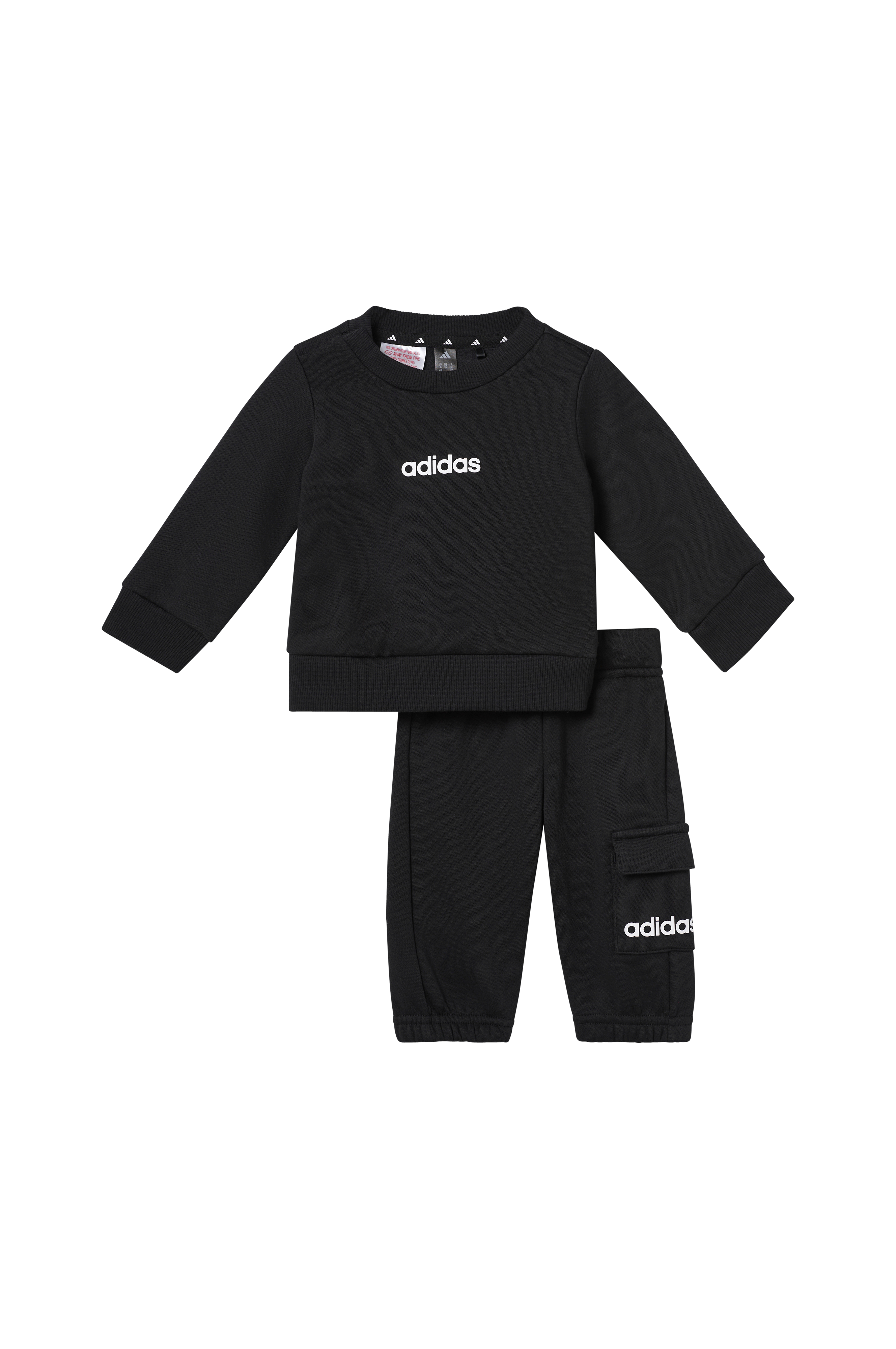 • 2-delt babysæt med sweatshirt og træningsbukser• Blød, børstet inderside• Trykknapper på en skulder• Ribmanchetter ved manchetterne og nederst• Træningsbukser med elastisk talje og elastik ved enden af benene