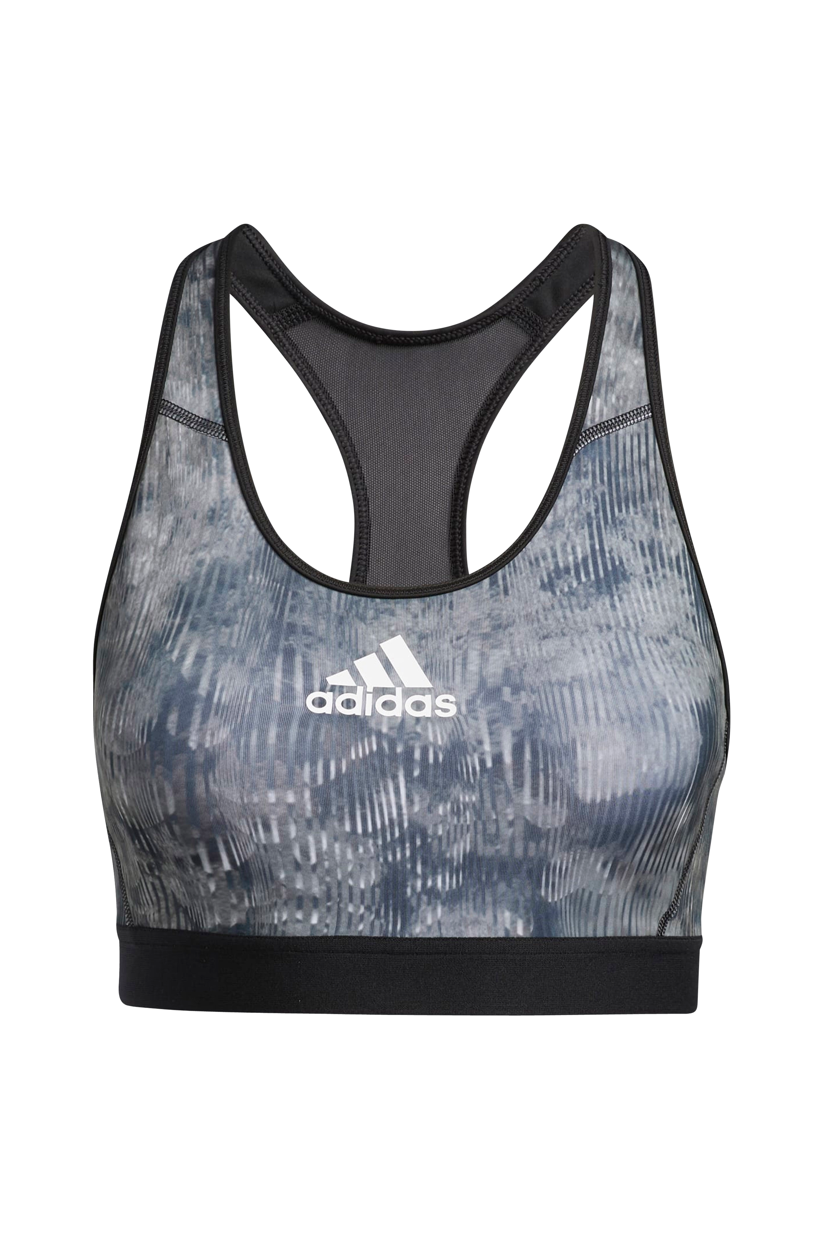 Sports-bh med kompressionspasform til træning med middel intensitet. Model med rund halsudskæring som trækkes over hovedet. Fremstillet i stretchmateriale med fugtabsorberende AEROREADY. Udtagelige indlæg, stabiliserende bånd foran og bryderryg.