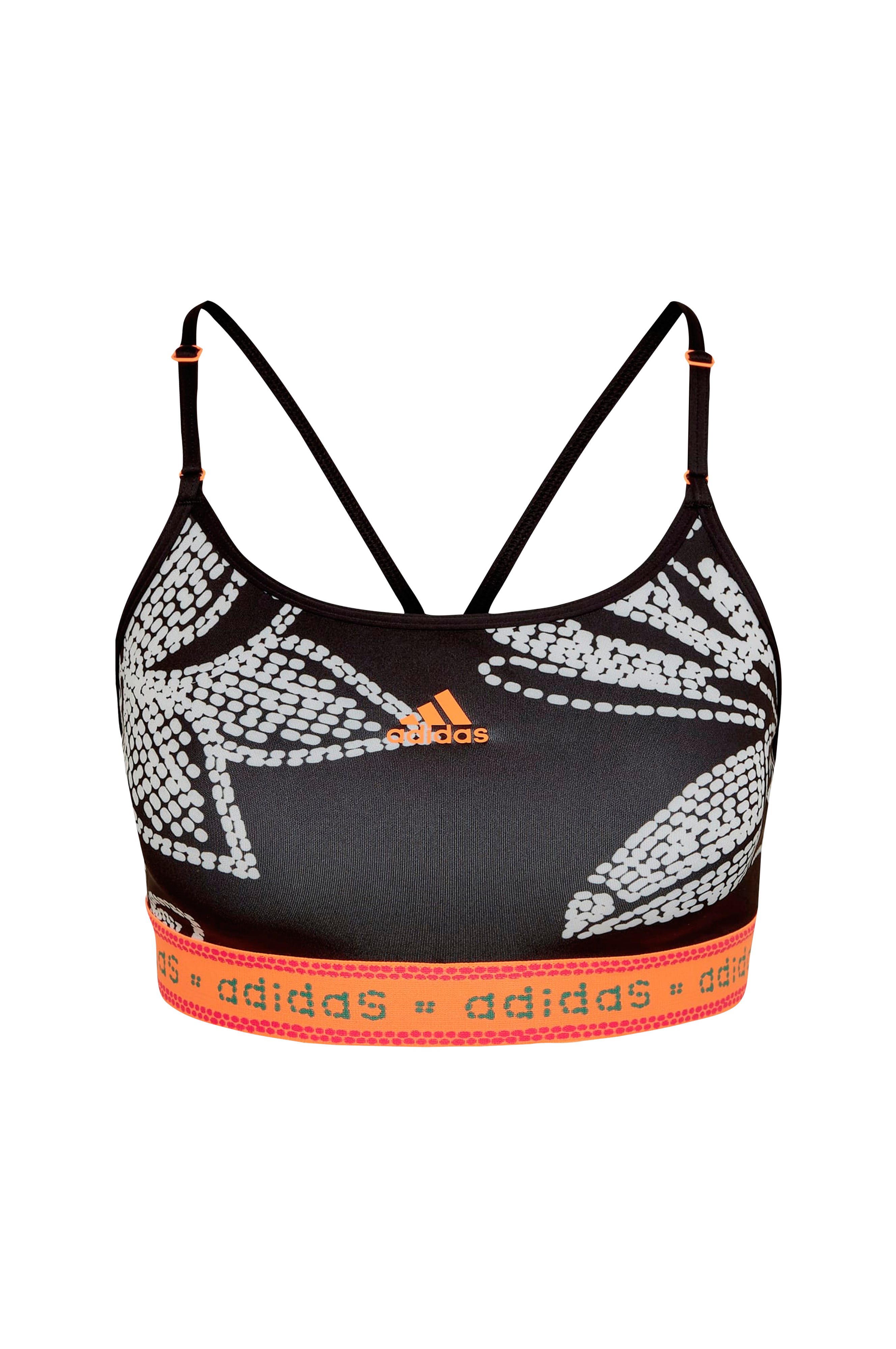 • Sports-bh med let støtte • Elastisk bånd med logo nederst • Krydsende, justérbare skulderstropper • For foran • Produktet indeholder genindvundet materiale, som genbruges for at reducere mængden af affald samtidigt med at der ikke anvendes nye ressourcer.